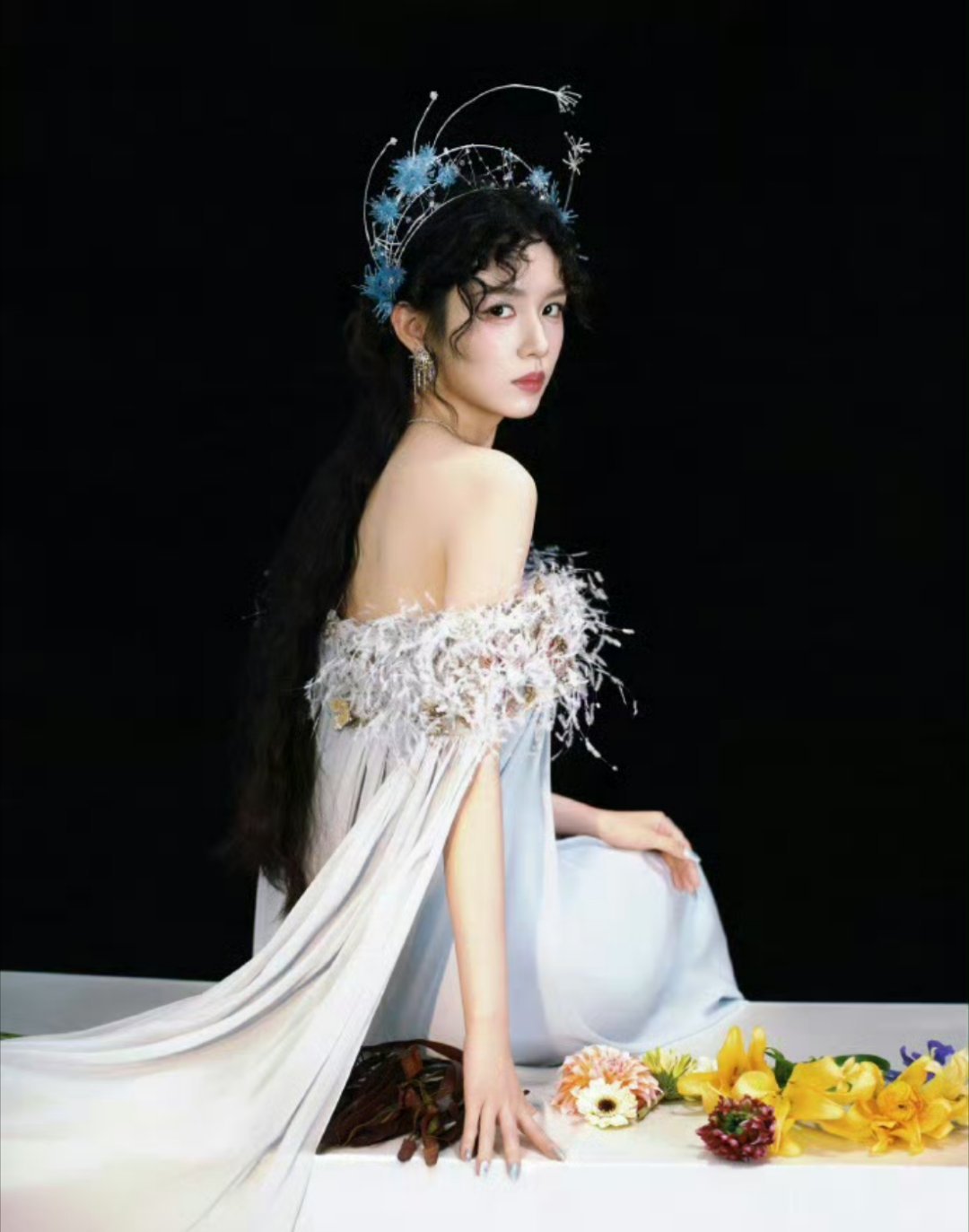 周也油画神女谁看了不喊一句绝!周也白纱羽毛裙也太仙了,油画神女本人,清温柔雅直
