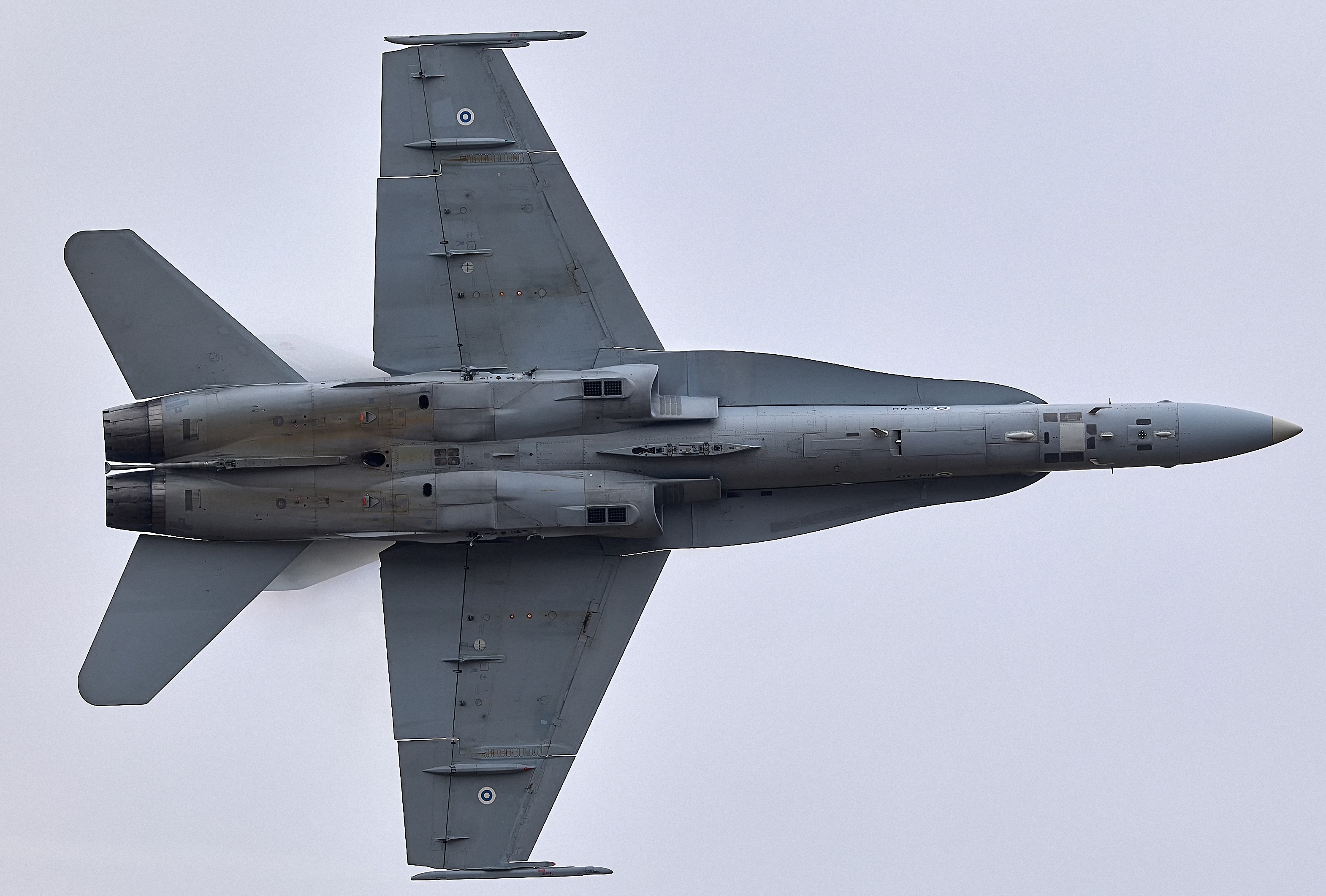 高分辨率图像F18的腹部视角,干净,热焰弹原来安装在这个位置