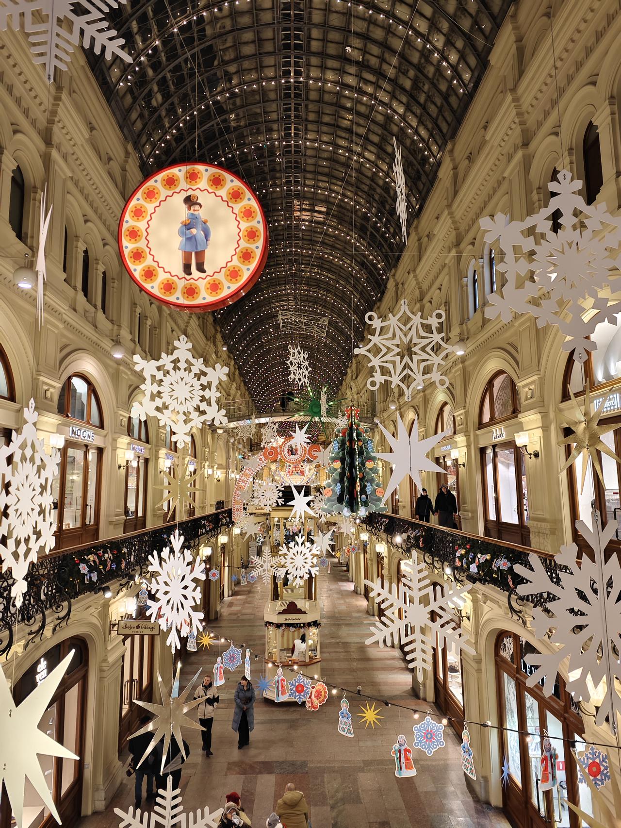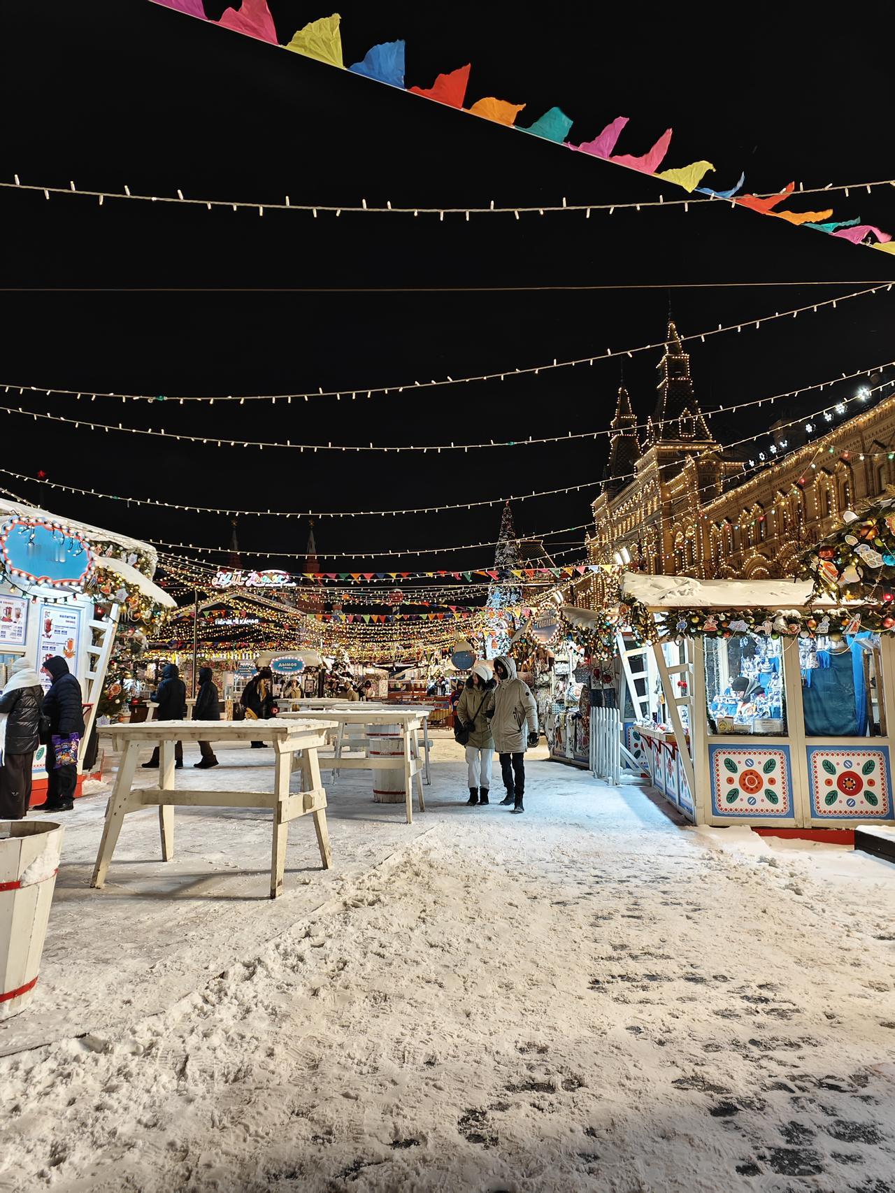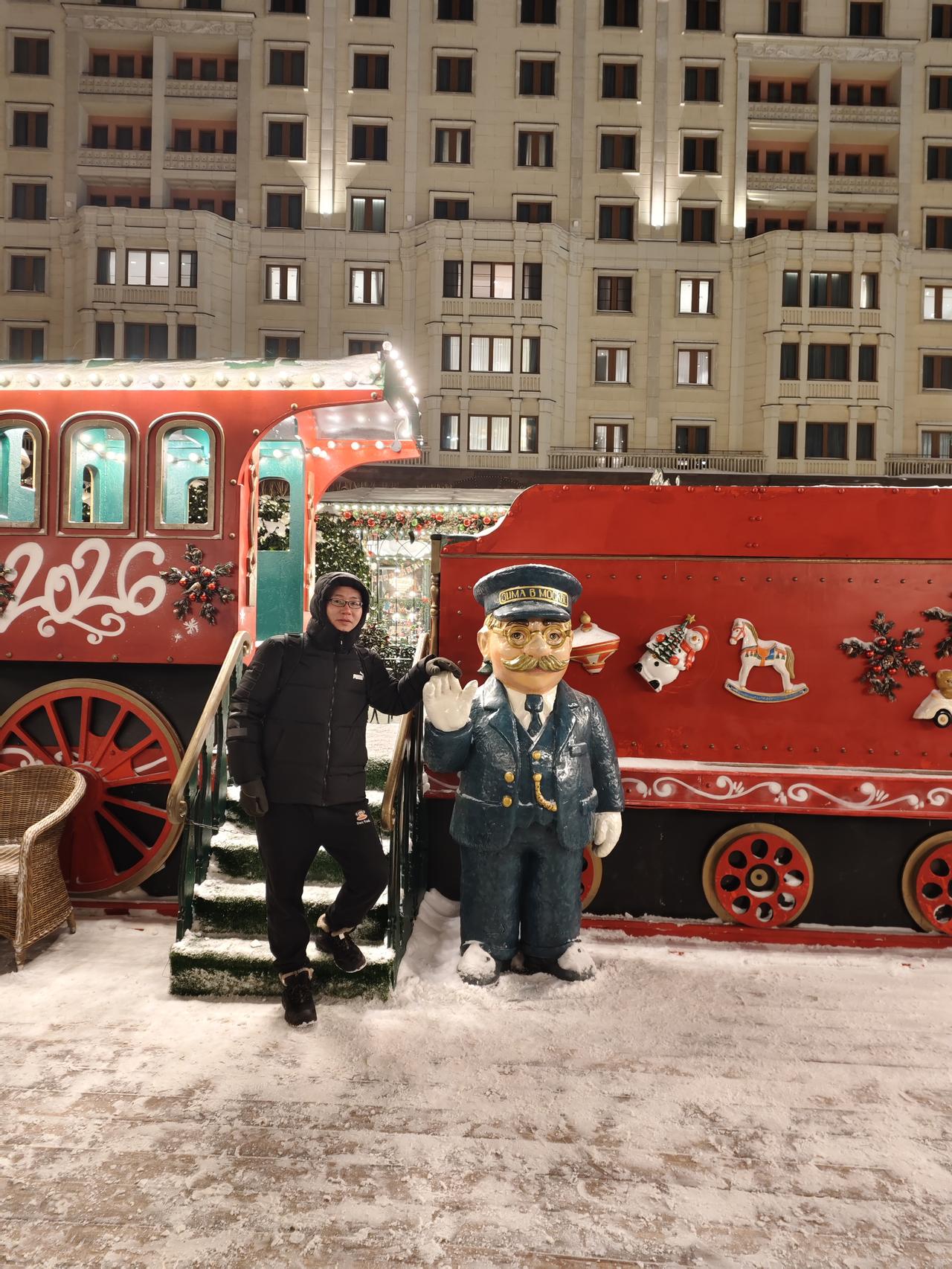 感觉我的适应能力还是很强的,从出生到现在第一次体验零下10-20℃,感觉就前两天有些不适应,后面就一切都正常了。 第一天刚出机场,等网约车的几分钟就冻得不知所措,第二天布展后带老婆去红场玩,晚上风很大,虽然里面穿着一条加绒的秋裤,外面再加上一条加绒的运动裤,但是感觉和没穿裤子一样,两条腿被风吹得瑟瑟发抖。鼻子和脸也被吹得受不了,一直用带着手套的手捂着嘴巴和鼻子。不过羽绒服还是很保暖,上半身没感觉到冷。 老婆更夸张,加长的羽绒服,毛线帽子,羽绒服的帽子也带上,还用围巾把整个脸都围起来,就留一双眼睛在外面。 但是还要拍照,我手就拿出来拍照的10来秒就感觉要冻僵了,带老婆去了该打卡的地方打了卡,老婆还在那里一直拍拍拍。虽然我穿着加厚的袜子和加绒的鞋子,但我的脚早已经失去知觉了,赶紧拉着老婆往商场跑……室内室外就是相差40多度 不过俄罗斯的年轻的美女穿得真是少,感觉就一条薄秋裤加一条牛仔裤,然后里面一个保暖衣加一个薄棉袄。 后面不知道是不是温度上升了几度,还是适应了这个温度,再也没有前两天这样冷的感觉了。参完展,晚上就到处逛去了……