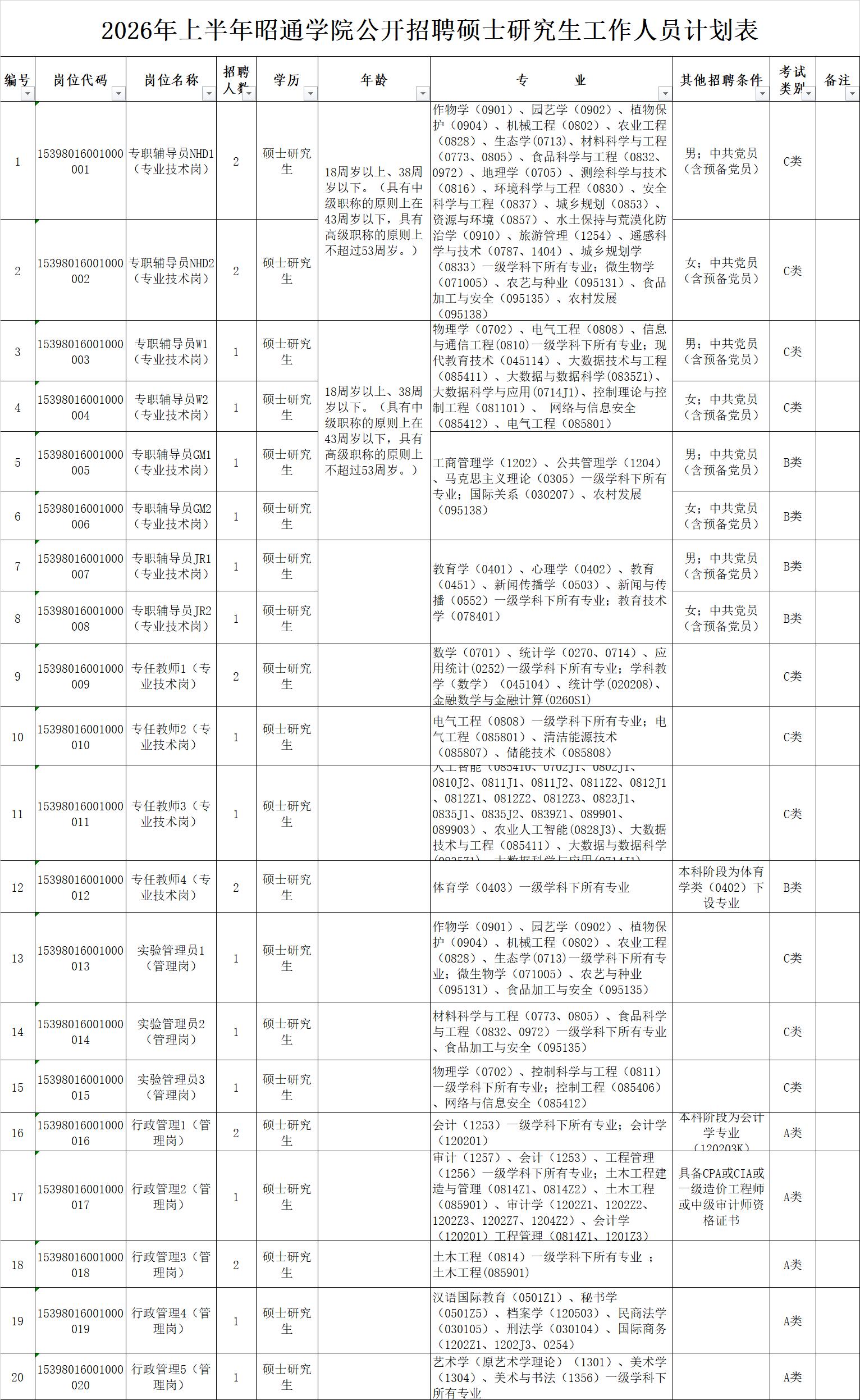 2026年多少分能上岸昭通学院?。2026年 面向社会公开招聘硕士以上...