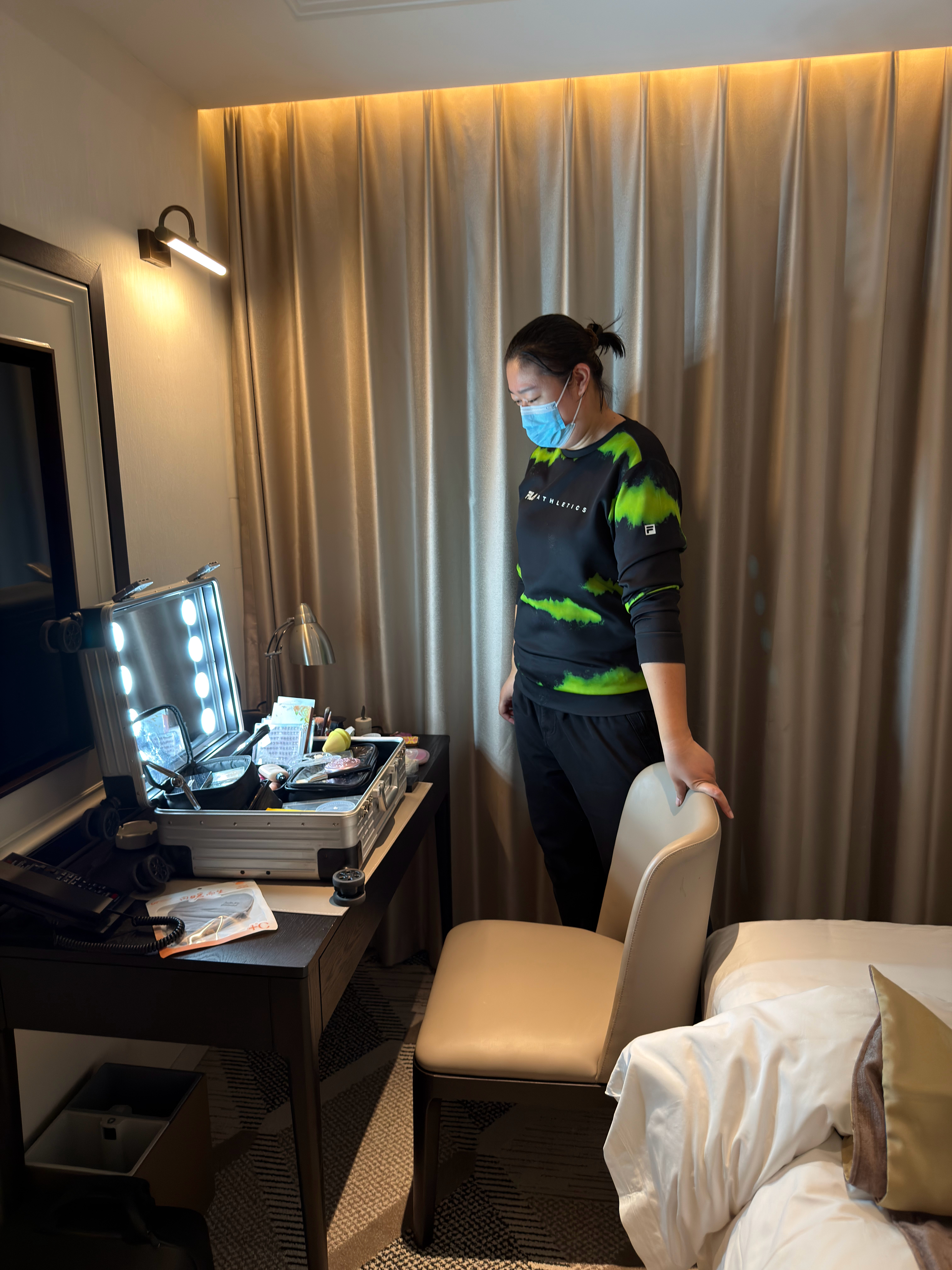 因为化妆师小姐姐,哦不,化妆师大姐姐太高了,180~(我官方身高170)