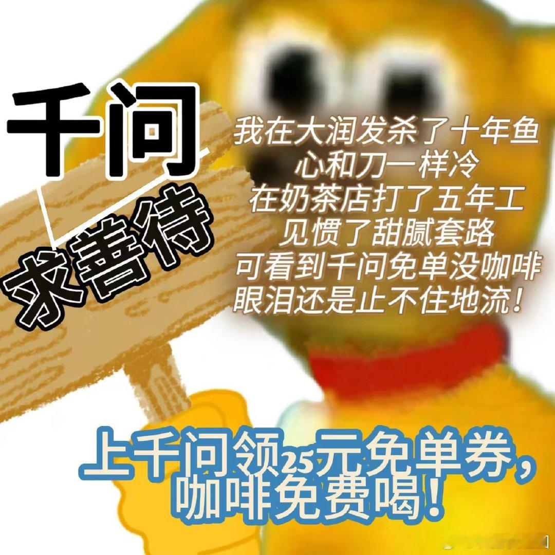 挪瓦为咖啡人喊话千问免单咖啡全体咖啡人集合!挪瓦带着千问免单福利强势喊话,打工人续命咖啡不用省,1分钱就能喝到爽,这波羊毛必须薅!