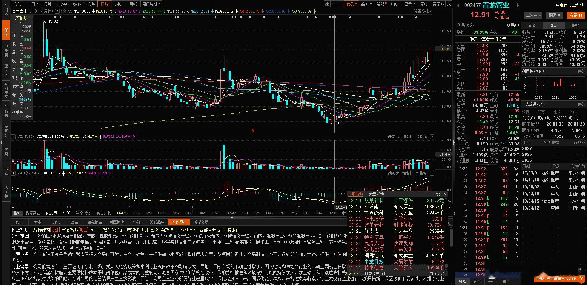 1.28日买入的 $青龙管业 sz002457$ 沿着趋势线 一直稳步上涨