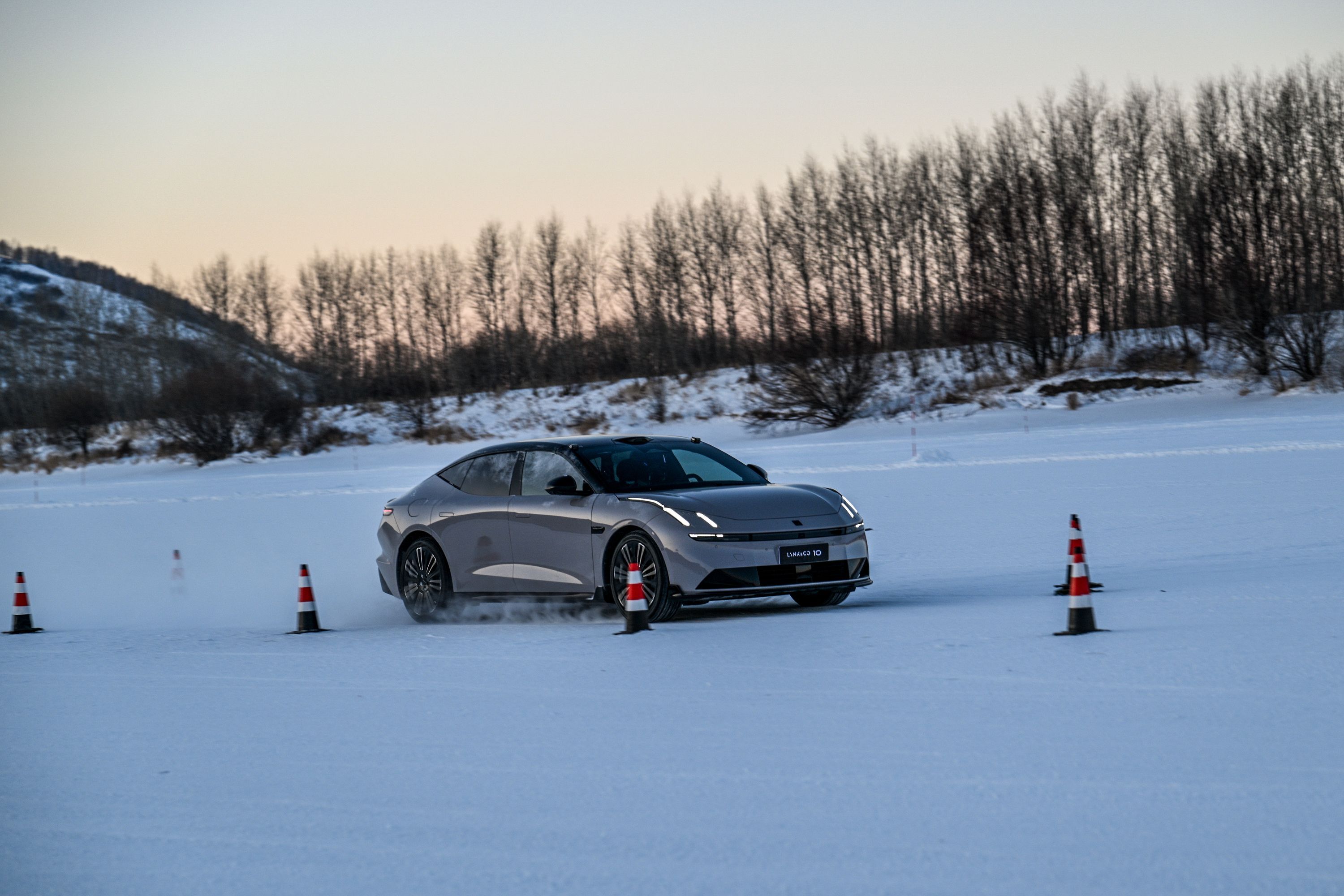 更关键的是雪地飞坡紧急避障测试,在冰雪湿滑的复杂路面上,以81.86km/h的速度飞坡落地后,车身姿态稳定,成功完成紧急避障,验证了领克10 EM-P全系四驱和底盘在极限操控下的真操稳