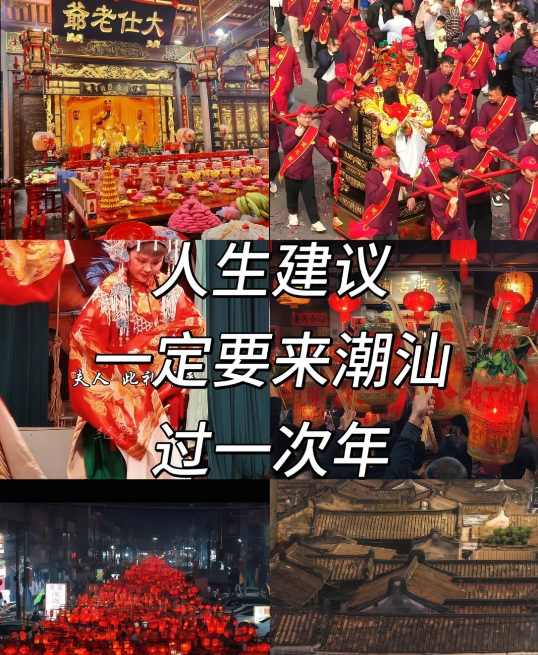 海外的中国年味浓度超标了 建议一定要来潮州过一次年,潮汕,在这里,习俗盛宴轮番上演,热闹喜庆远超出您的想象。 一年一度的年尾答谢神恩,熟悉浓厚的年味逐渐到来。拜神不仅是一种单纯的民俗活动,更是人们的一种精神上的寄托,是深入人心的一种文化。潮州的年味,醉了游子心,引来八方客,欢迎大家来潮汕感受不一样的年味。潮州人的年味在哪里都得是满分