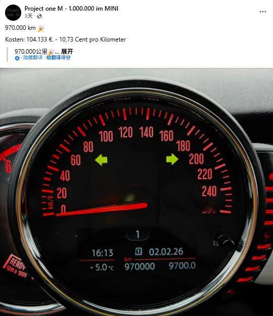 脸书上有个开车大神,2000年购入一辆斯柯达晶锐,然后2013年7月他已经开着这辆车跑了100万公里。这还不算完,2014年夏天,他又买了一辆MINI Cooper,目标非常明确,就是让这辆MINI也冲破百万公里大关。他在脸书上开始记录他的行驶里程,脸书的名字就叫“MINI百万公里计划”。截止目前这辆MINI的行驶里程已经达到97万公里,看来达成目标指日可待。根据他年初的记录,目前这辆MINI Cooper累计加油690次;柴油的燃油总花费为38102.88欧元(约合31万元);25次保养总计22594.32欧元(约合18.5万元)。这位大神每年开着这辆MINI至少跑8万公里,已经跑了25个国家,他准备在达到百万公里的时候,把这辆车开到英国牛津的MINI Cooper工厂。另外那辆斯柯达车他也还留着,现在行驶里程已经超过了125万公里。