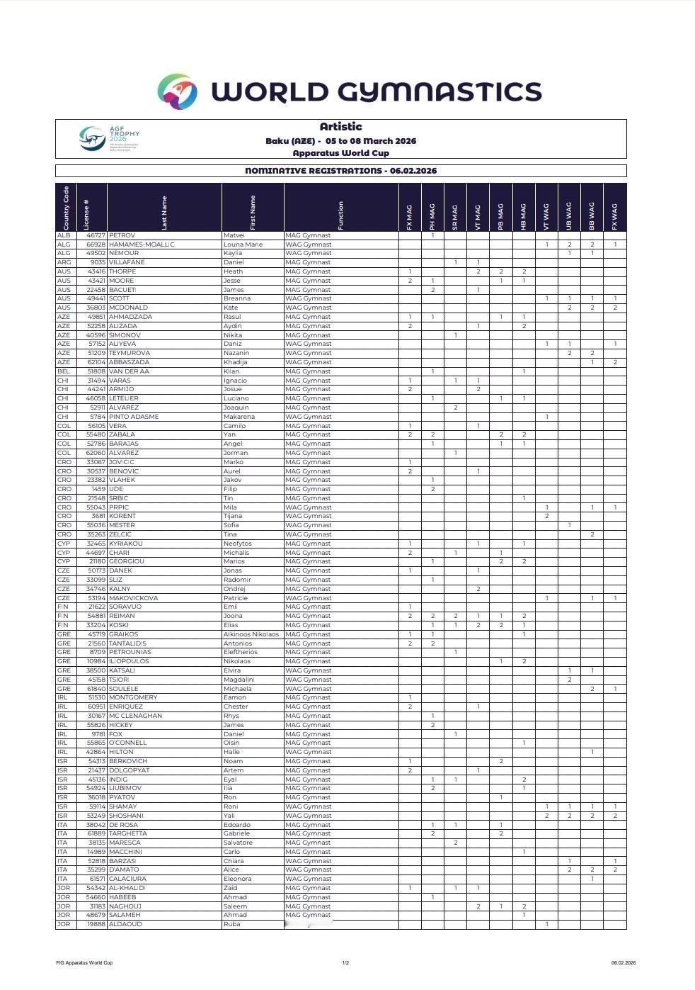 世界杯巴库站第一次报名名单(3.5-3.8,和美国杯撞时间)