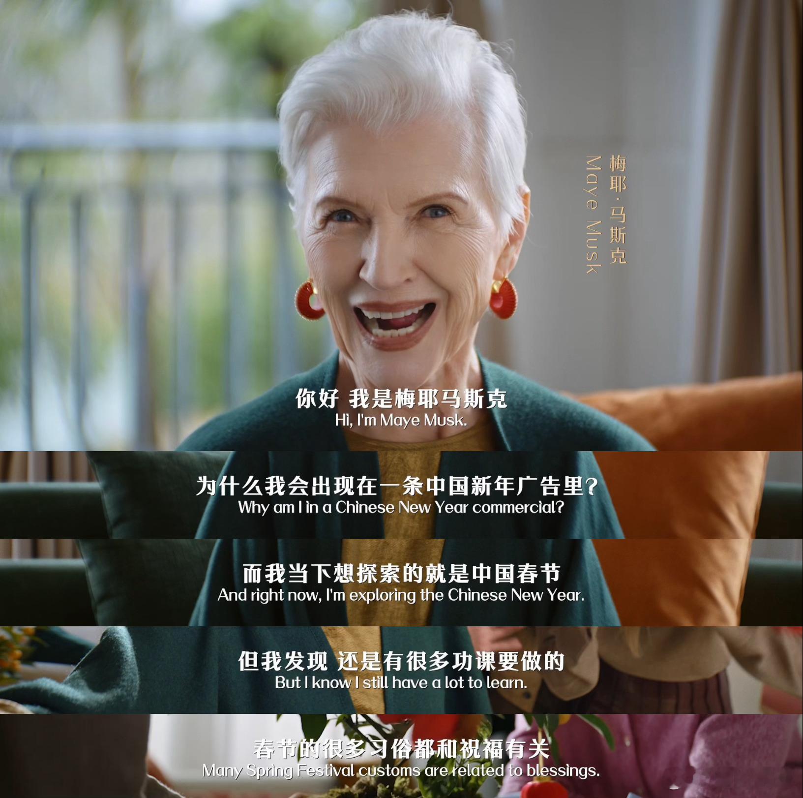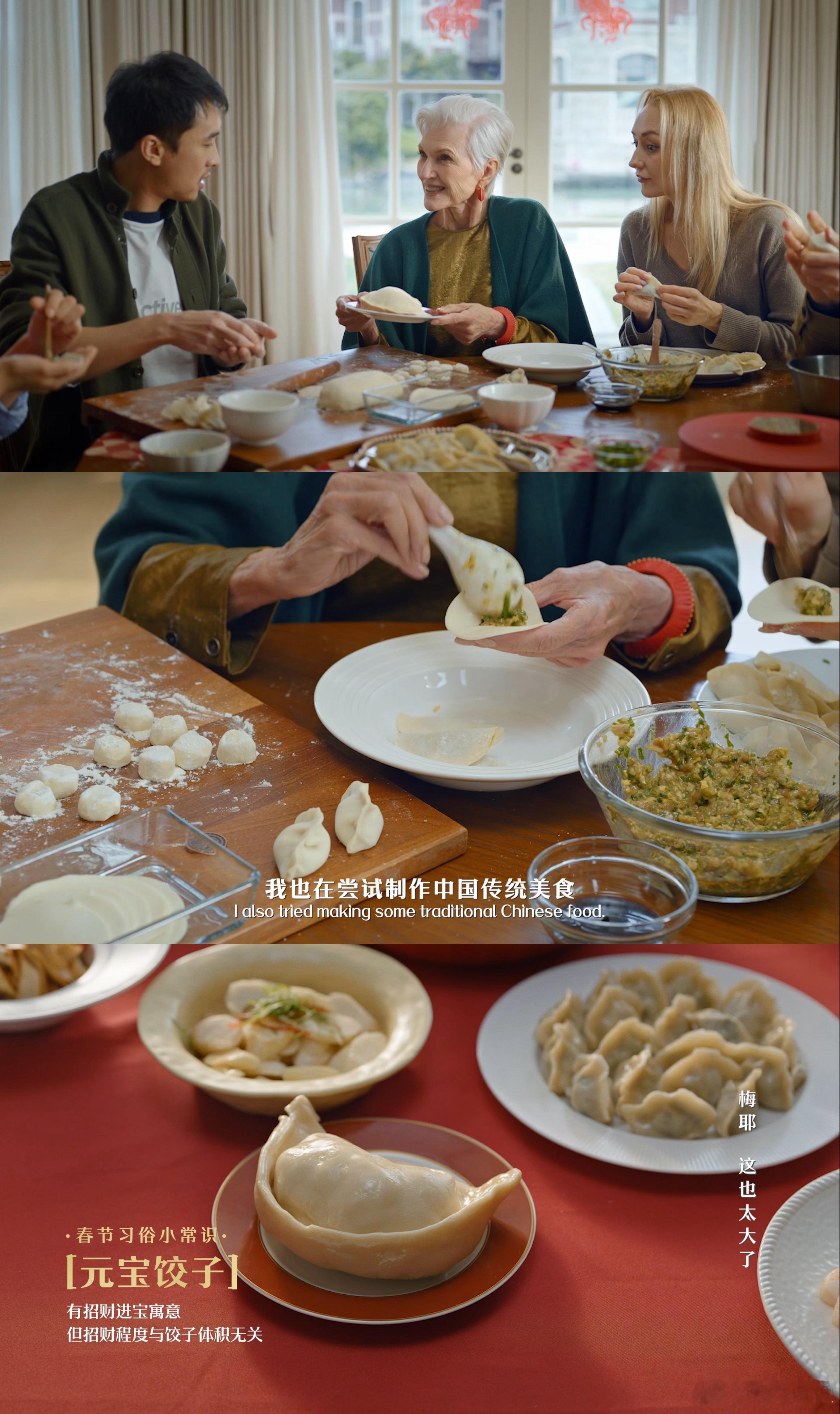 马斯克妈妈沉浸式体验中国年77岁梅耶马斯克玩转中国年仪式感77岁梅耶的中国年初体验太有梗了!把“囍”字窗花当春节装饰,被巨型元宝饺子惊到瞪圆眼,连讨礼物环节都秒变“考题现场”。不懂手工文化却乐在其中,认真学包饺子的模样又萌又优雅,这波跨文化年味碰撞,适配度直接拉满~