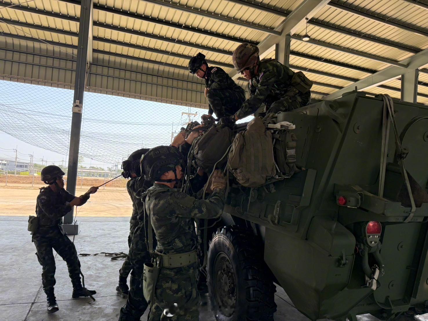烽火问鼎计划 2026年1月26日至2月6日,美国陆军向泰国派遣人员,开展并支持“斯特瑞克”装甲车领导力课程,为泰国皇家陆军提供指导、专业知识和领导力交流。训练重点在于计划、指挥和联合作战。图1黑板文字:斯特赖克装甲车编队阵型关键指挥人员位置排长位于最能有效控制全排的位置,以便根据战术需要协调指挥全排及所属分队(车载或下车),并与连队其他部分协同行动。排军士长在排下车作战时通常与车载分队一起行动,或根据任务、敌情、地形、部队、可用时间与民事考虑等因素的需要,随同全排下车行动。