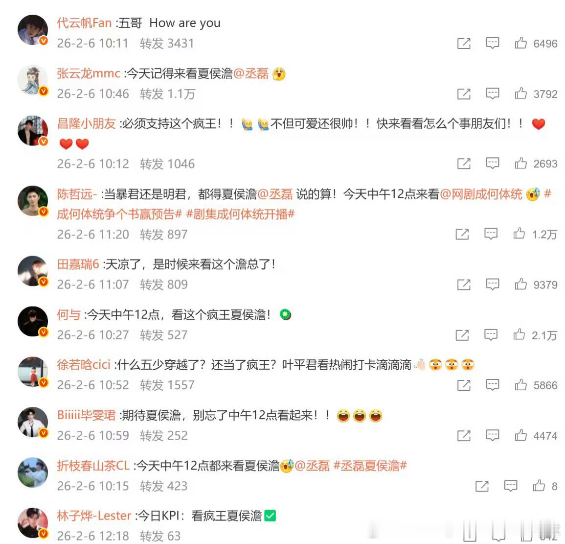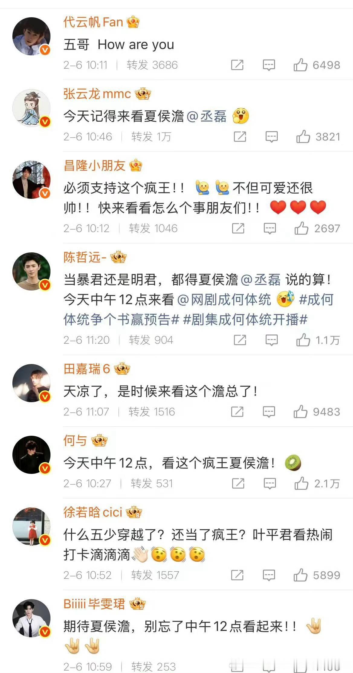 丞磊圈内人缘丞磊这人缘太好了,新剧《成何体统》开播,这么多好友来打call