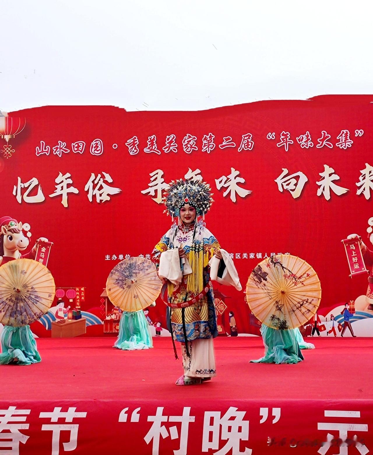 山水田园-秀美关家第二届年味大集今天如期举行,还挺热闹的。 关家镇地方不大,但待客热情,一条主街,除了摆满年货,还支上了大桌。来者都是客,请上座,免费吃大席。 文艺节目也非常有品味,毫不敷衍。汉调二黄舞台效果专业而高级、舞狮虎虎有生气,非常有特色,值得一看。
