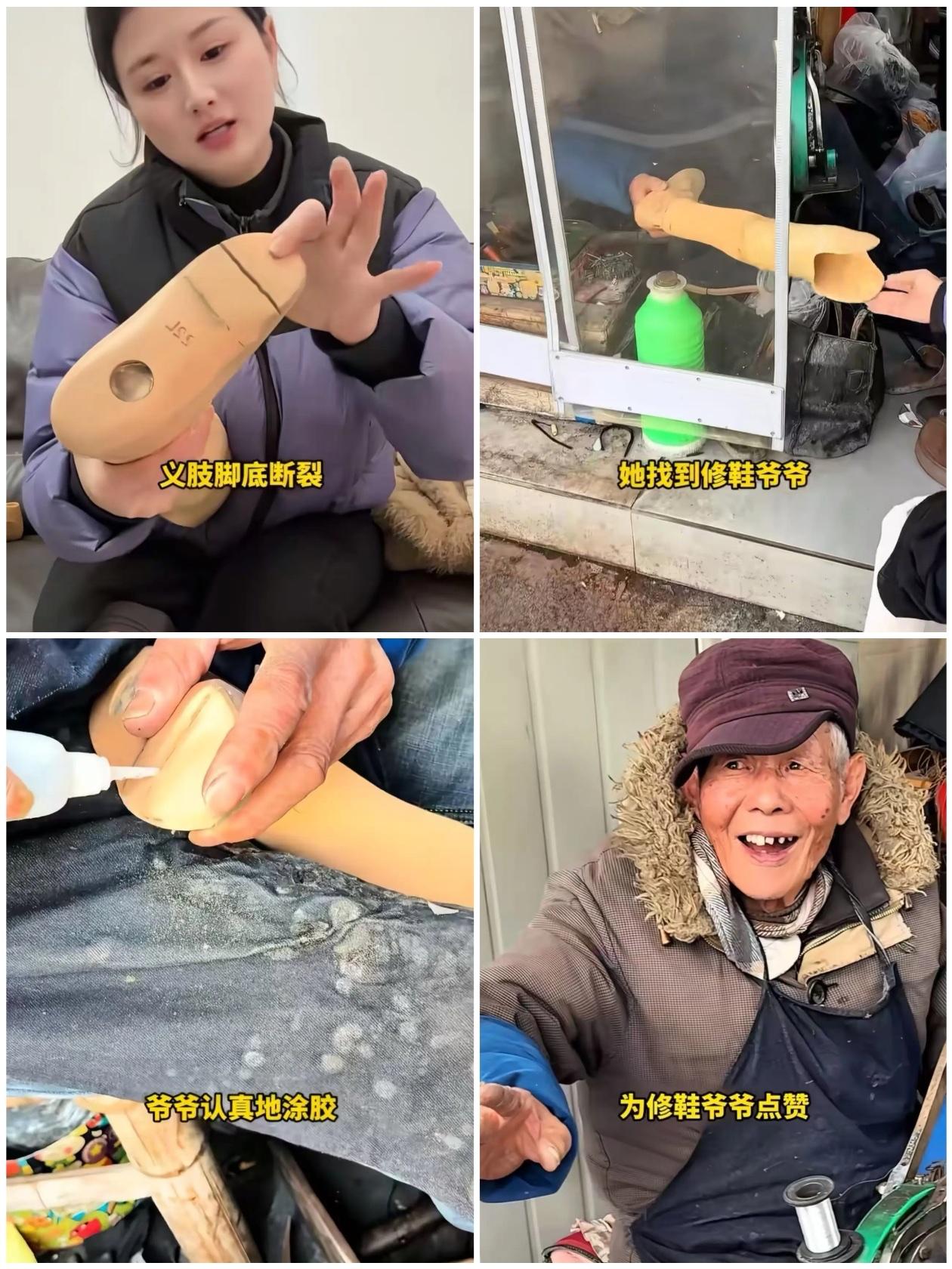 江苏无锡,残疾女子因为支付不起一万元的假肢修理费而求助于修鞋大爷,大爷不但把她的