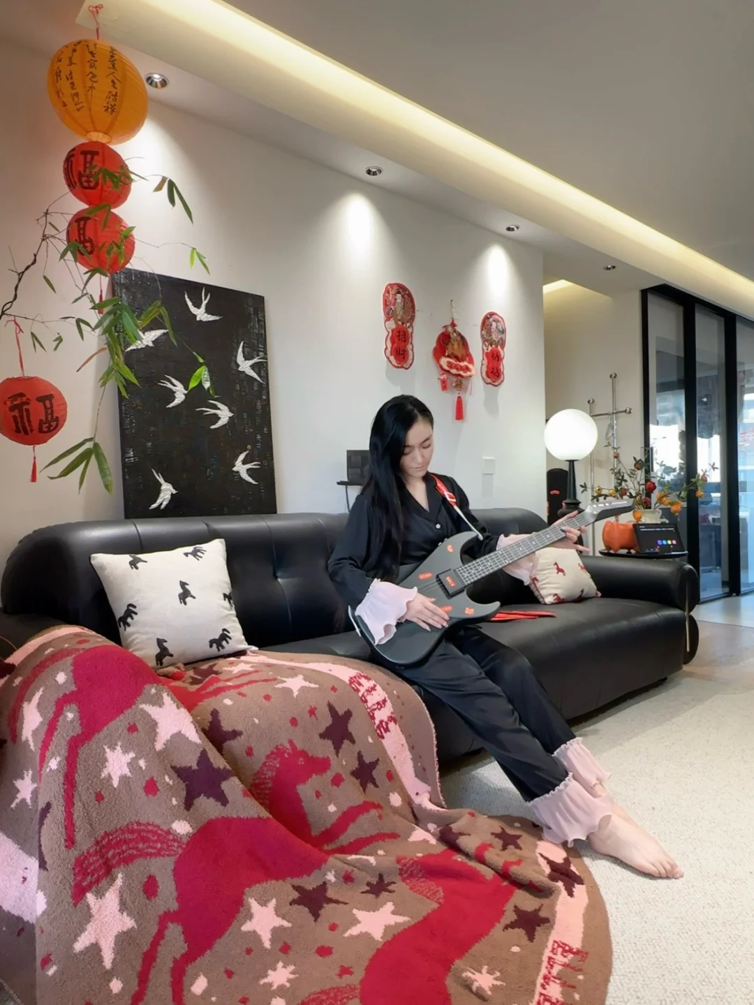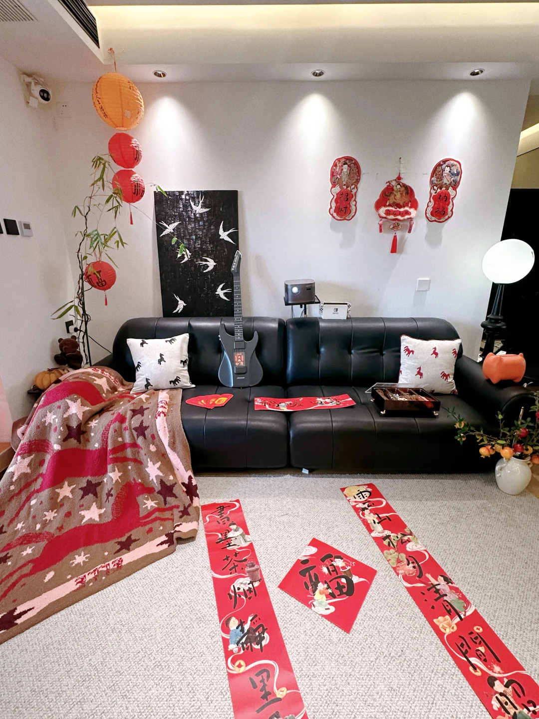一点简单的春联,小灯笼,红色氛围感抱枕,柔软的小马毛毯,可爱糖果盒...