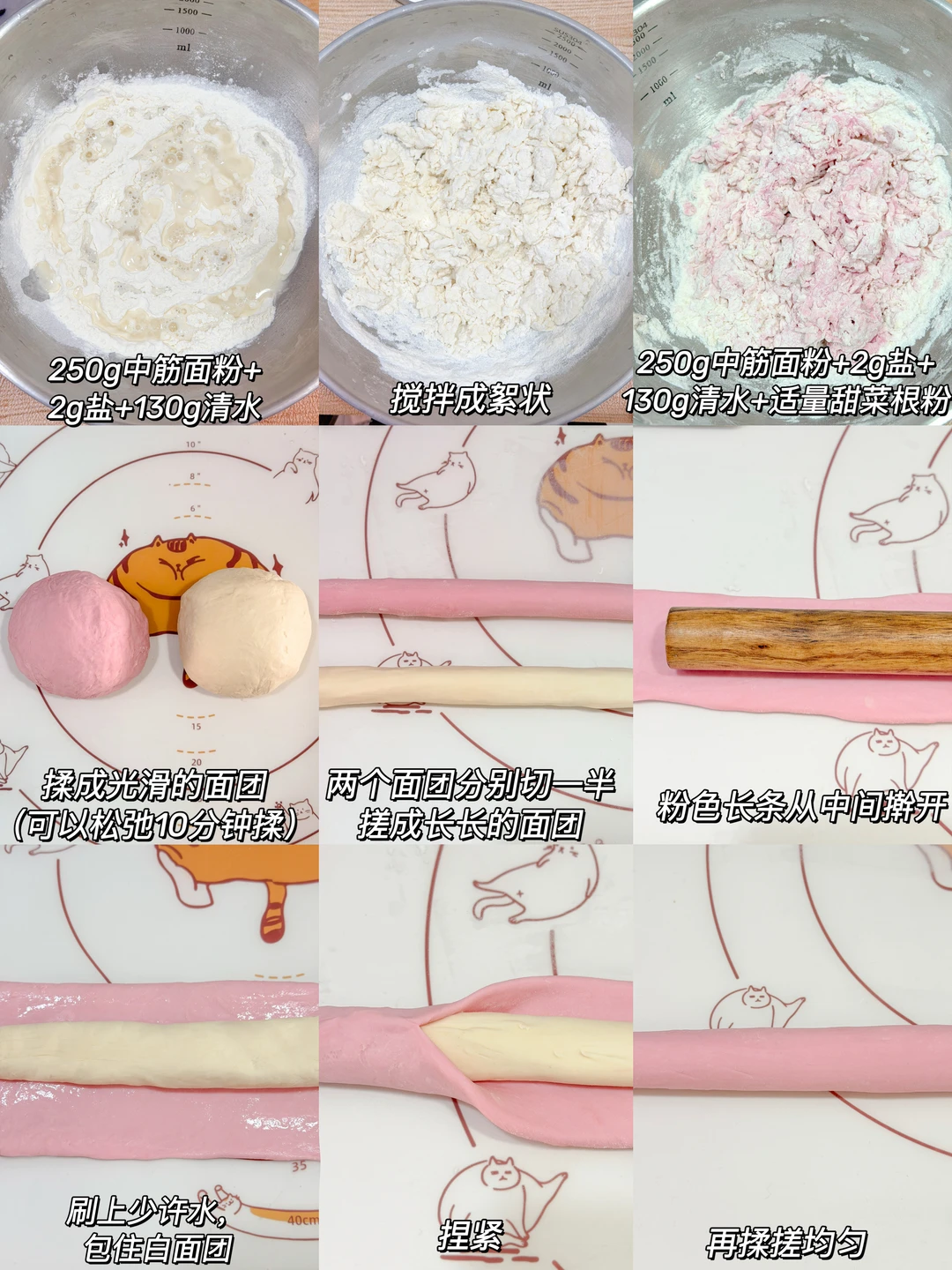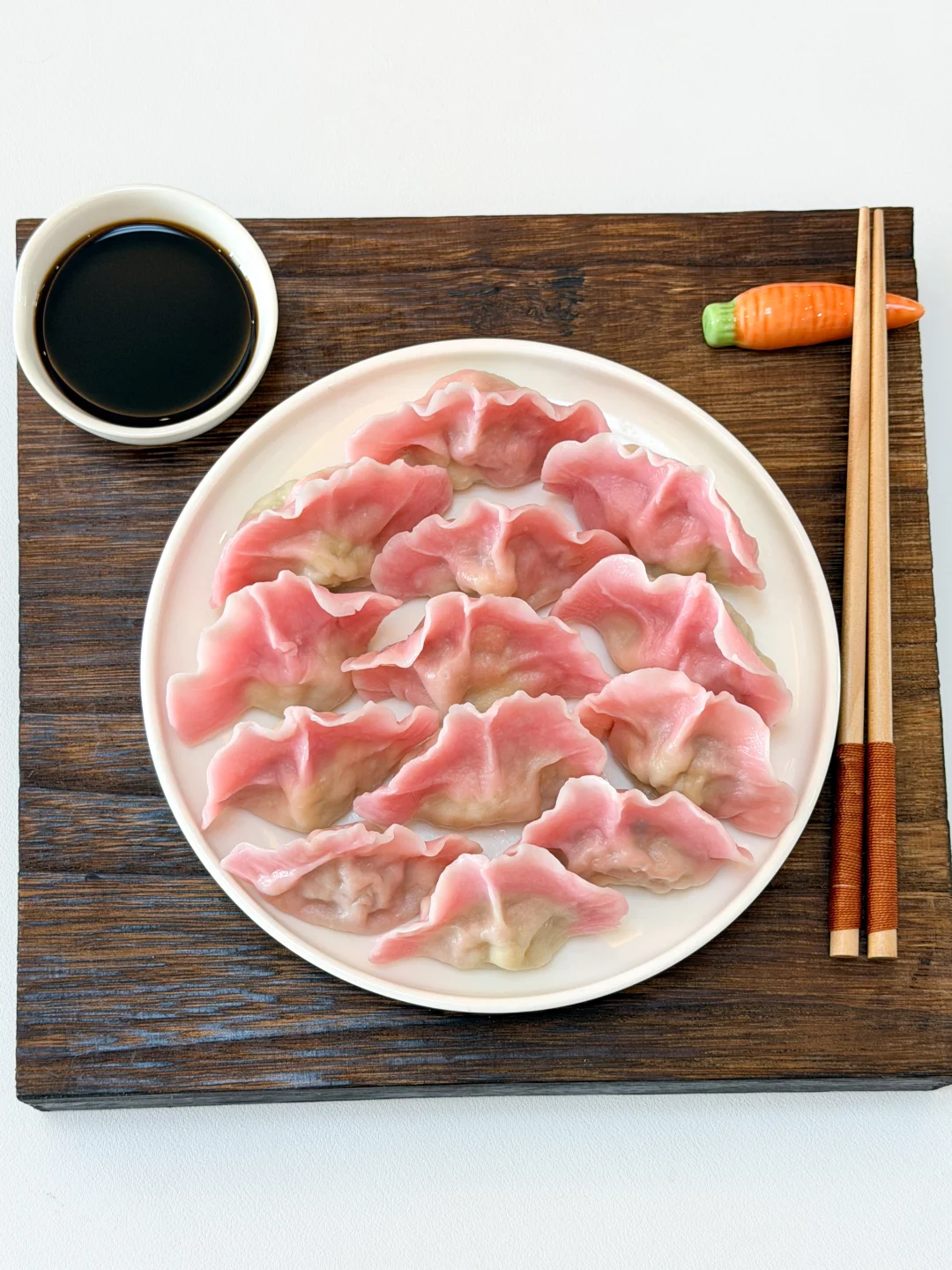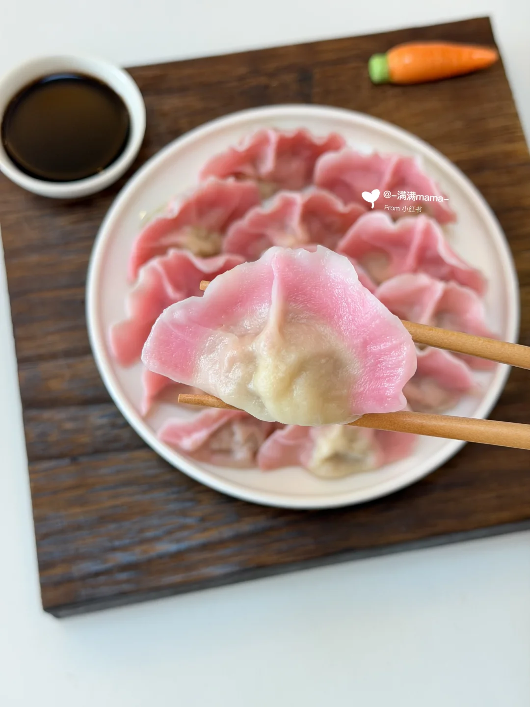饺子皮部分:中筋面粉、盐、甜菜根粉