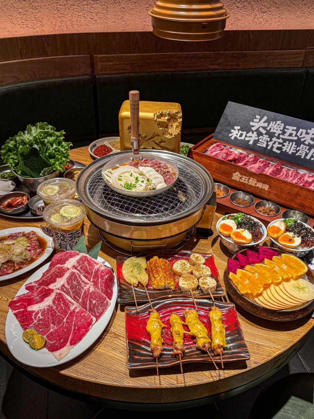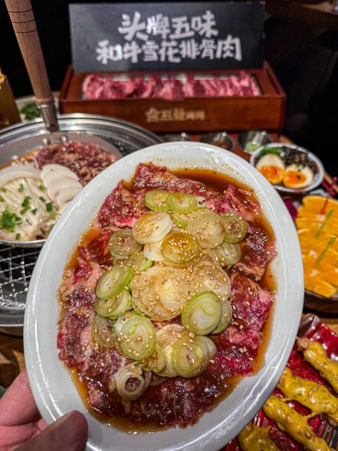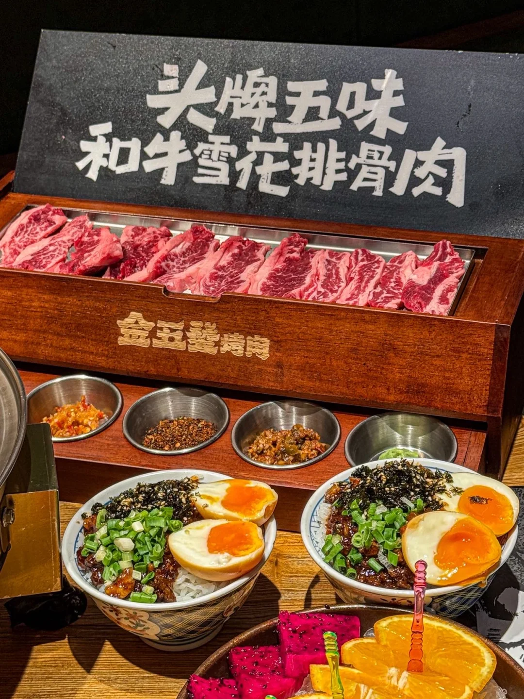 烤肉脑袋们真是有口福了 有了新发现 烤肉夹水果片 开发出了新吃法 每次来都会有惊喜 比生菜包肉吃着口感更丰富解腻 ✔️头牌五味肉 ✔️牛雪花排骨肉 ✔️Mini溏心蛋浇汁牛肉饭 ✔️柠檬茶 肉质在线 口感很好 服务也在线 喜欢吃烤肉的朋友冲了❗ 📍金五发烤肉(欧亚卖场)