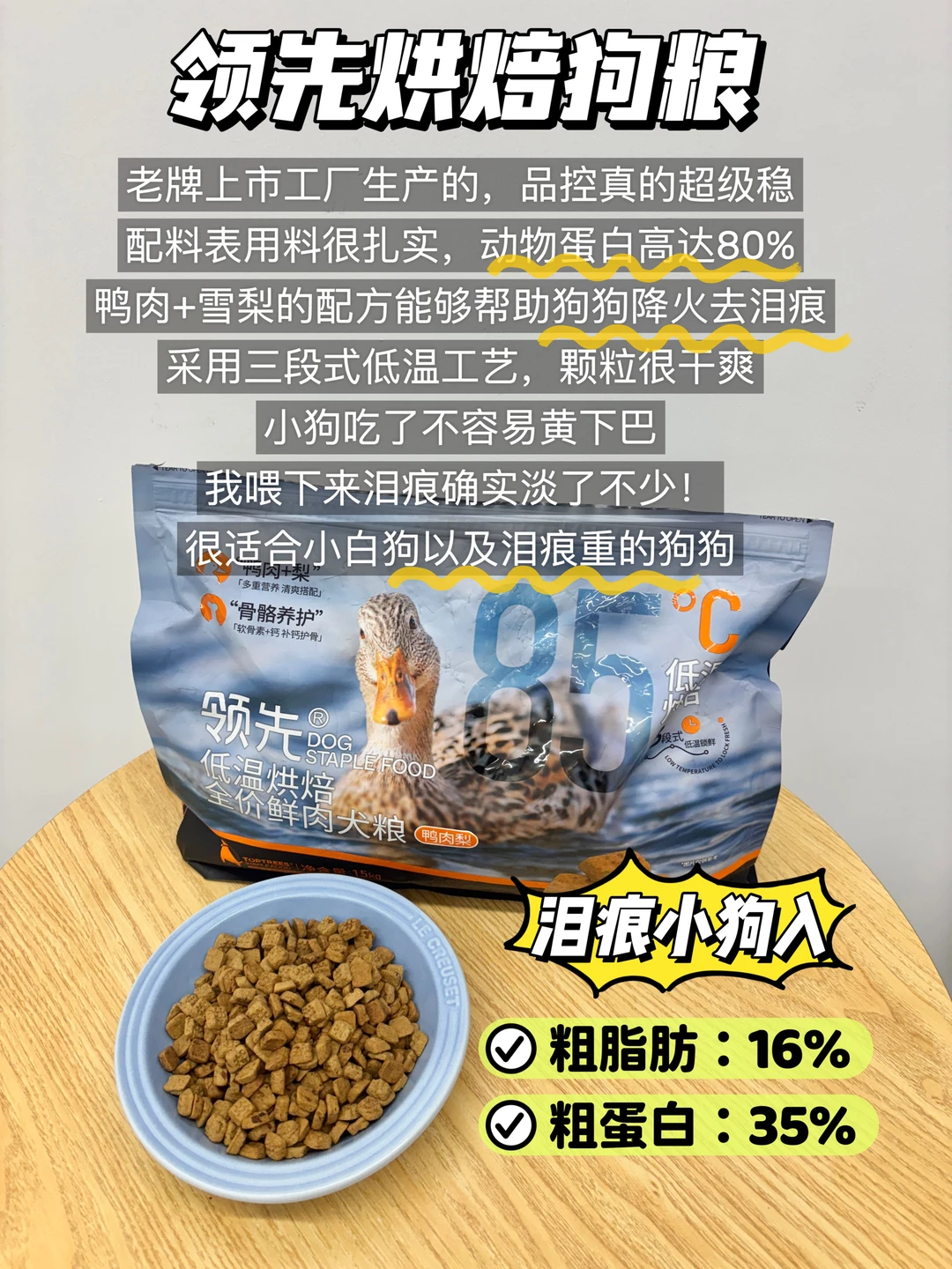 老牌上市工厂生产的,品控真的超级稳,配料表用料很扎实,动物蛋白高达80%,🦆鸭肉+雪梨的配方能够帮助狗狗降火去泪痕,采用三段式低温工艺,颗粒很干爽小狗吃了不容易黄下巴,我喂下来泪痕确实淡了不少!💧很适合小白狗以及泪痕重的狗狗