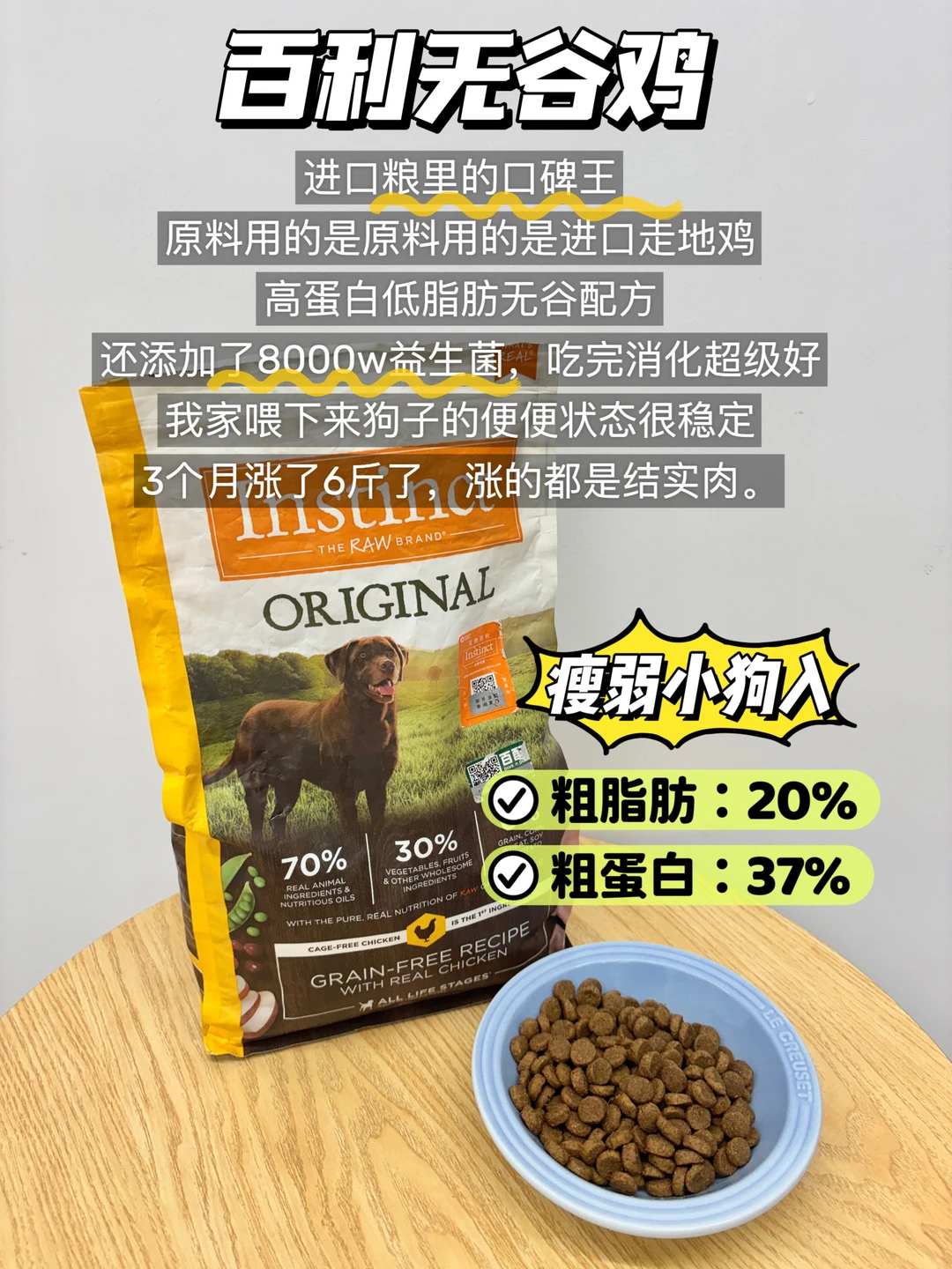 进口粮里的口碑王👑原料用的是原料用的是进口走地鸡🐔高蛋白低脂肪无谷配方还添加了8000w益生菌,吃完消化超级好。我家喂下来狗子的便便状态很稳定,3个月涨了6斤了,涨的都是结实肉。