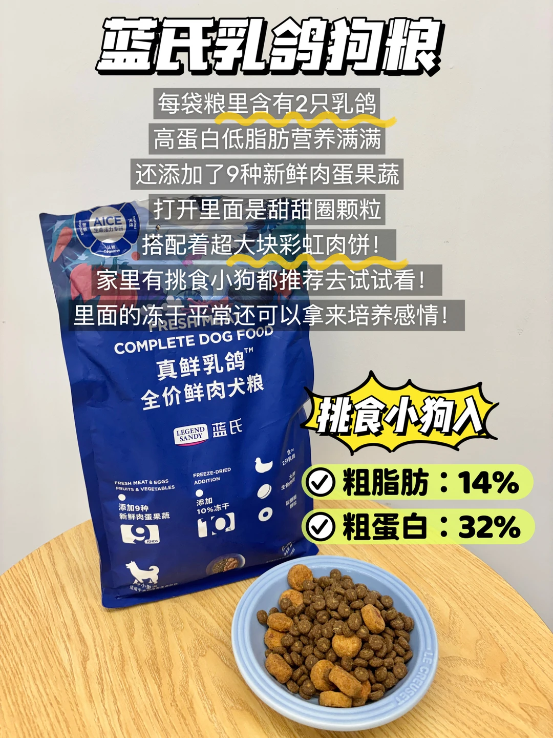 每袋粮里含有2只乳鸽🐦高蛋白低脂肪营养满满,还添加了9种新鲜肉蛋果蔬🥬打开里面是甜甜圈颗粒搭配着超大块彩虹肉饼!家里有挑食小狗都推荐去试试看!里面的冻干平常还可以拿来培养感情!