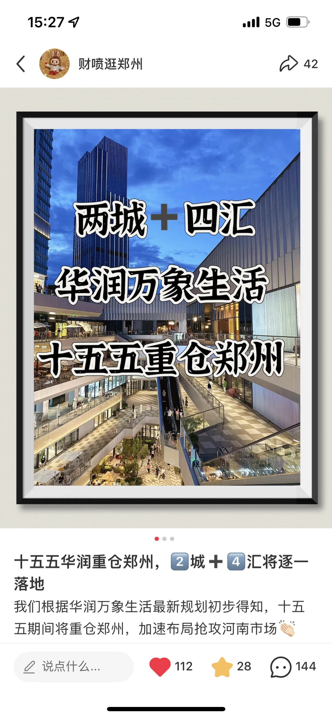在今年的1月12日,我发文透露了“华润万象生活十五五规划”里关于河南的部分,可谓是振奋人心:在现有两座大体量(20万方➕的二七万象城、24.1万方➕的郑东万象城)基础上,接下来计划在郑州建设4️⃣~6️⃣个万象汇(冗余指标建设万象天地),计划在其余地市建设不少于2️⃣个万象汇。