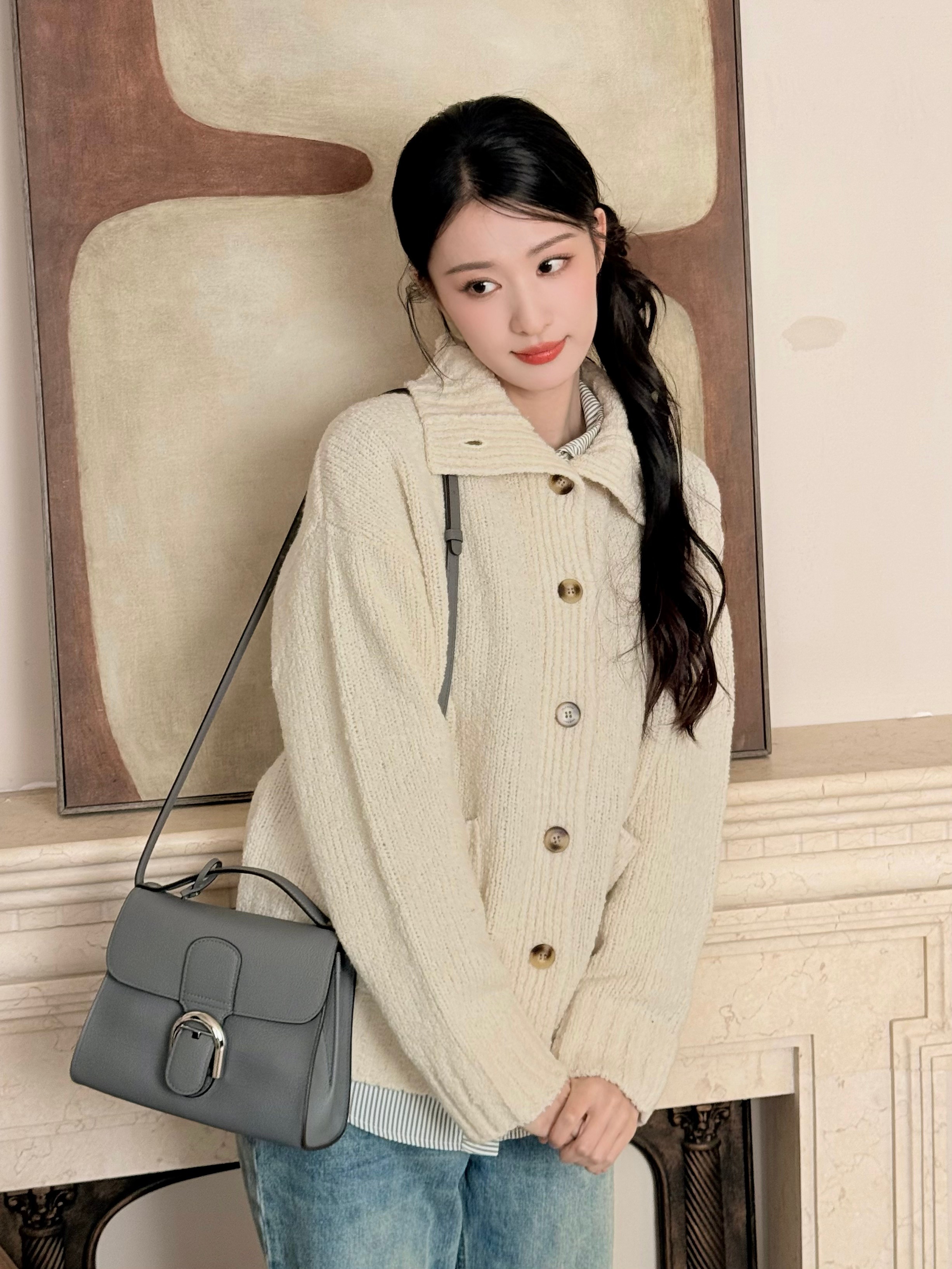 软质小牛皮揉合标志性 D 形扣 ,在灰调的通勤松弛感 、浅棕的复古氛围与黑色碰撞的先锋气场间自由切换。既是街头造型的点睛之笔 ,亦是风衣 Look 的优雅注脚 ,适配西装更显利落锋芒 !感受属于 Delvaux 百年匠艺与当代审美的共鸣。
