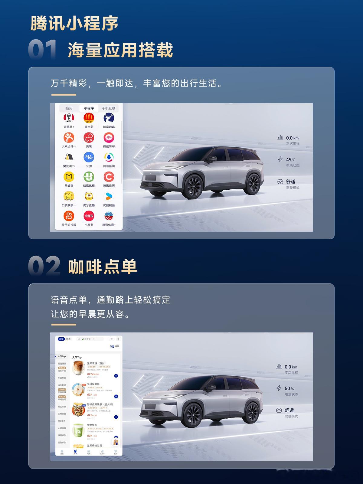 广丰的铂智3X马上在3月有OTA了,第一个就是Momenta的智能辅助驾驶优化,然后导航设置后可以智能推荐周边吃喝玩乐的地方,支撑更多APP,而且能语音点咖啡了!