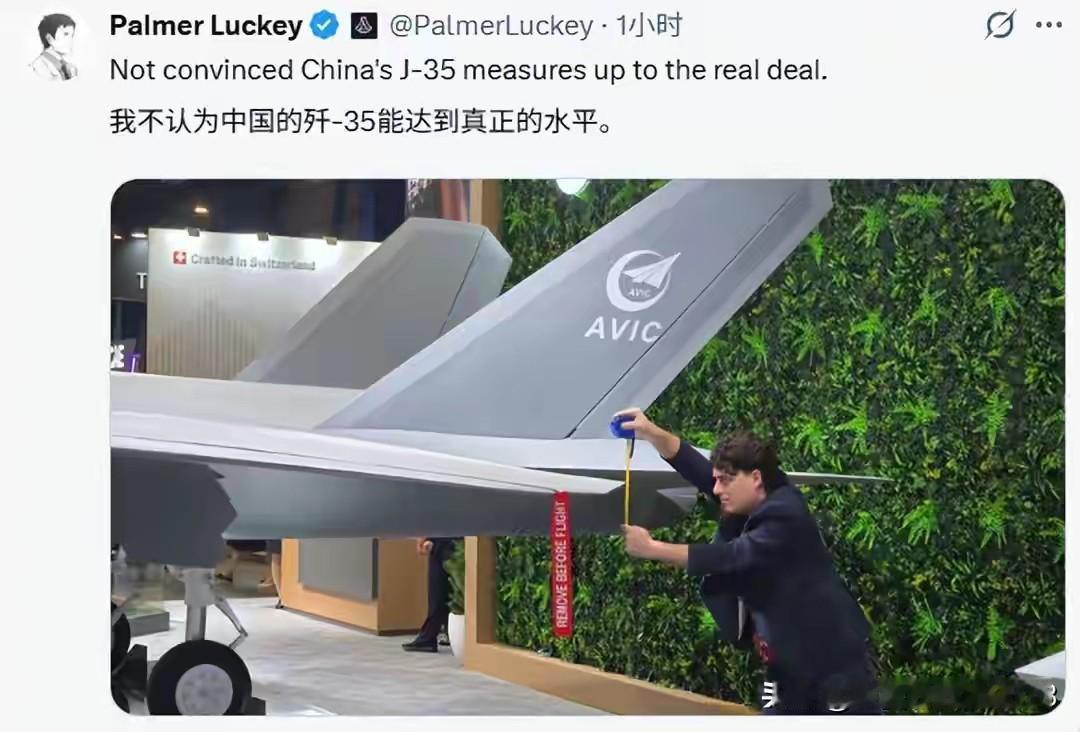 高傲的美国军火商,终究还是低下了那不可一世的头颅。 然而,他们依旧嘴硬,拒不承认我国军工科技的飞速发展,却亲自拿着皮尺下场测量! 在新加坡国际航展上,惊人的一幕出现了。 美国军火开发商的负责人手持皮尺,围着我国歼 - 35 模型反复丈量,最后竟厚颜无耻地宣称,歼 - 35 的科技水平不及美国先进! 殊不知,这种自欺欺人的行径,恰恰暴露了美国人内心的焦虑与不安! 也再次充分说明我们军工科技的突破与发展,已经成为了美军火商头顶上的达摩克利斯之剑!