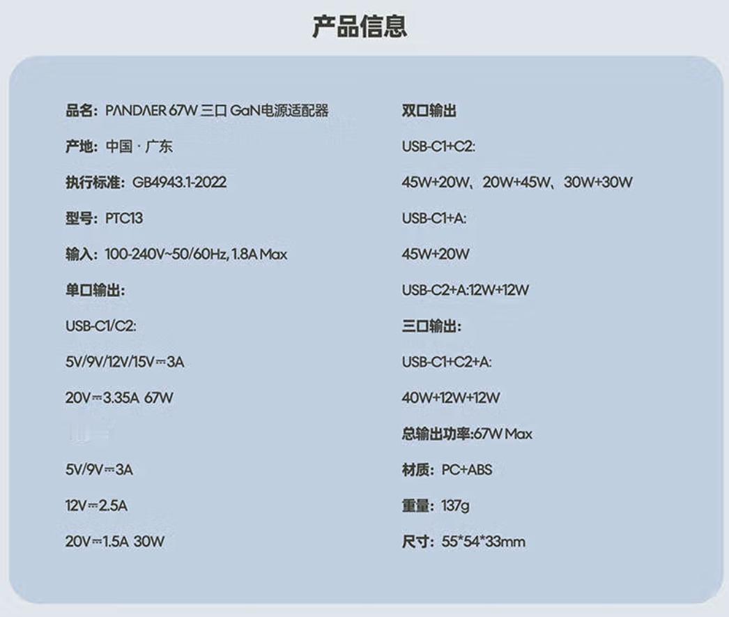 感谢魅族PANDAER送来的 领克联名的氮化镓充电头,别的不说 魅族的设计配色确实没的说,67W 三口,2个C口一个A口 配置很全面,充电功率分配也不错。过段时间抽,别着急~