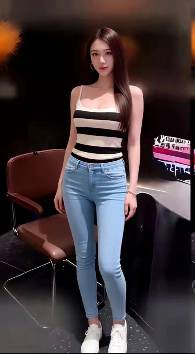 她是风掠过田埂时刻意慢下来的弧度黑衫漫过腰线像暮色漫过矮墙~牛仔裤裹