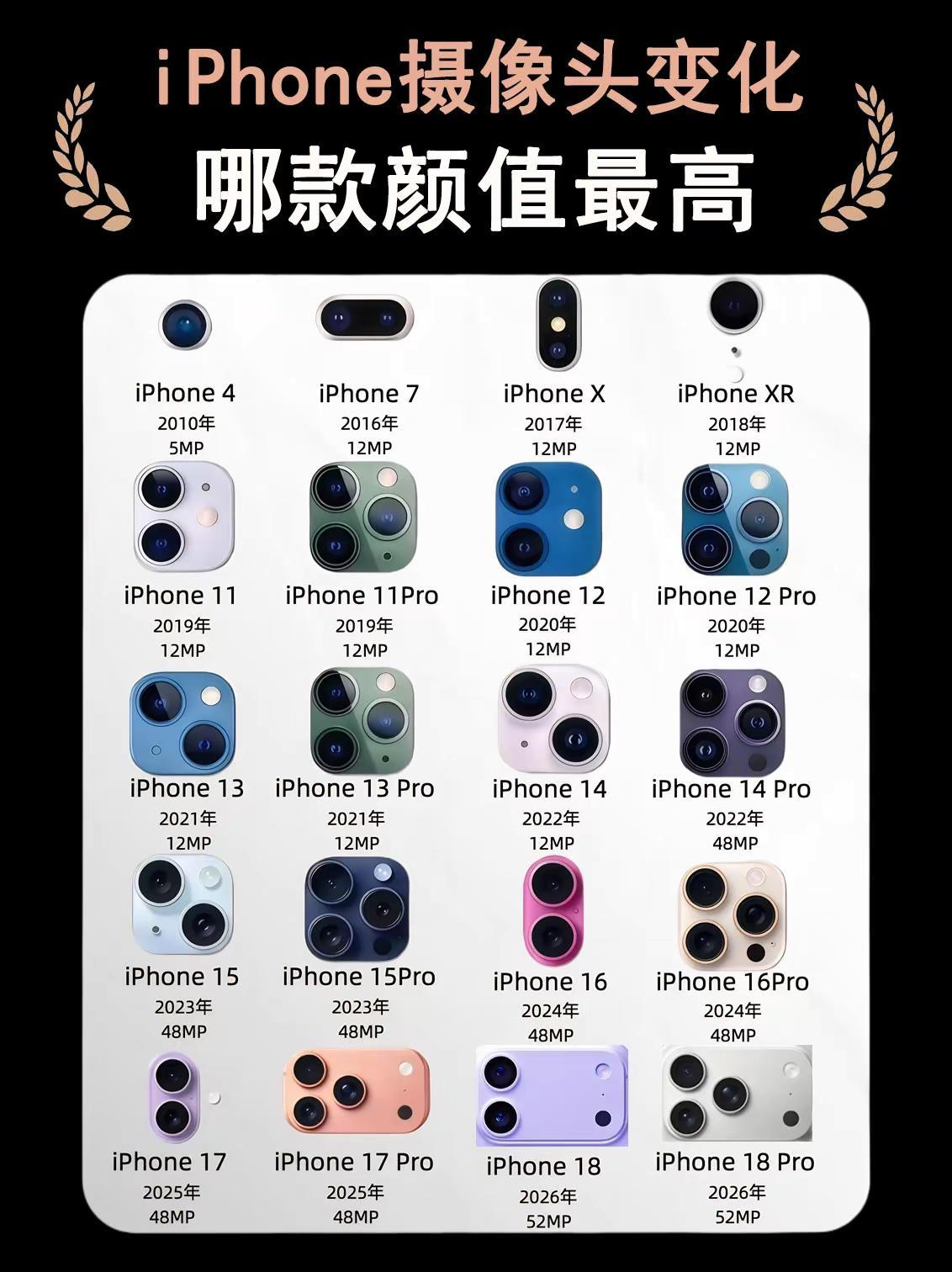 iPhone摄像头变化盘点。iPhone摄像头变化盘点,哪款的颜值最高?iPhone 苹果手机 iPhone18