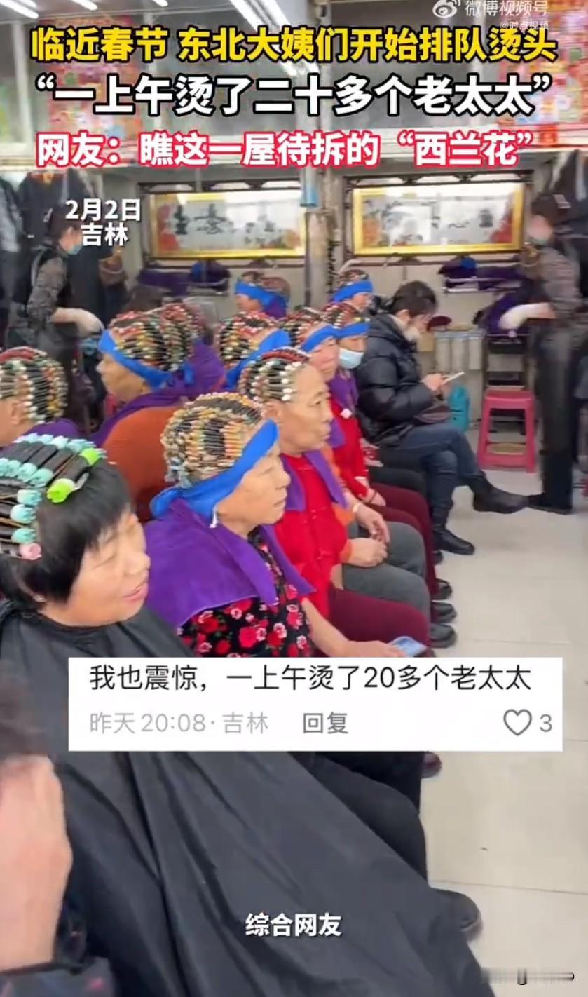 一上午烫了20多个老太太直接刷出满满的过年氛围感,一家理发店凭着超合大姨老太太们心意的手艺,一上午就给二十多位阿姨奶奶烫了头发,店里忙得热火朝天,网友看完直呼这才是过年该有的样子,这家店妥妥把中老年群体的审美捏得死死的!临近过年,剪头发、烫头发成了大家的必备仪式感,年轻人忙着换发型换新颜,阿姨奶奶们也不例外,都想烫个美美的卷发,以精致的模样迎接新年,而这家理发店就成了附近大姨们的首选打卡地,一大早门店里就坐满了人,热闹得堪比菜市场。从清晨开门营业开始,理发师们就没停下过手中的活,洗头、剪发、上卷、加热、定型,一套流程下来行云流水,工位连轴转不说,等候区也坐满了前来做造型的阿姨奶奶,大家一边等着做头发,一边唠着家常,家长里短、新年打算聊得热火朝天,欢声笑语飘满整个门店,年味直接拉满。短短一个上午的时间,店里就接连给二十多位老太太烫好了头发,羊毛卷、波浪卷、纹理烫,各式发型都贴合着阿姨奶奶们的喜好,不夸张不张扬,还特别显气质,烫完头的阿姨们对着镜子左看右看,满意得合不拢嘴,还不忘和理发师道谢,夸手艺比别家店好,烫出来的效果正合心意。有顾客随手把店里的热闹场景拍下来发到网上,二十多位老太太的烫头大军瞬间火了,网友们纷纷被这股浓浓的过年氛围感染。大家都说这才是最真实的年味儿,比起各种网红打卡地,理发店的这份热闹更接地气,也有人调侃这家理发店的理发师绝对是“中老年审美天花板”,不然也不会吸引这么多阿姨奶奶扎堆来烫头,还有人说从这二十多个烫头的老太太就能看出来,这家店的手艺是真过硬,毕竟能被大姨们集体认可的理发店,绝对有两把刷子。其实每年春节前,理发店都是最热闹的地方之一,而中老年群体的烫头大军,更是春节前的一道独特风景,剪去旧头发,烫出新年型,不仅是换个造型,更是大家对新年的美好期待。这家一上午烫二十多个老太太的理发店,也正是用这份热闹,让大家感受到了藏在烟火气里的新年喜悦,毕竟过年的仪式感,从烫一个美美的新发型开始就对了。