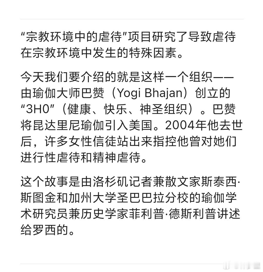 我也去翻了一下,这就是美国的邪教瑜伽组织,教主是一位连环性侵犯与性虐待的变态。
