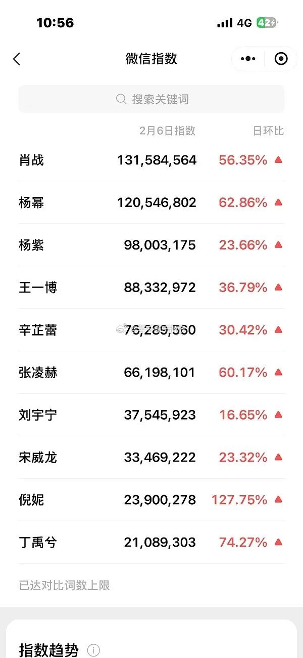 微博之夜次日明星微指数据来了次日最能反应出圈程度吧?
