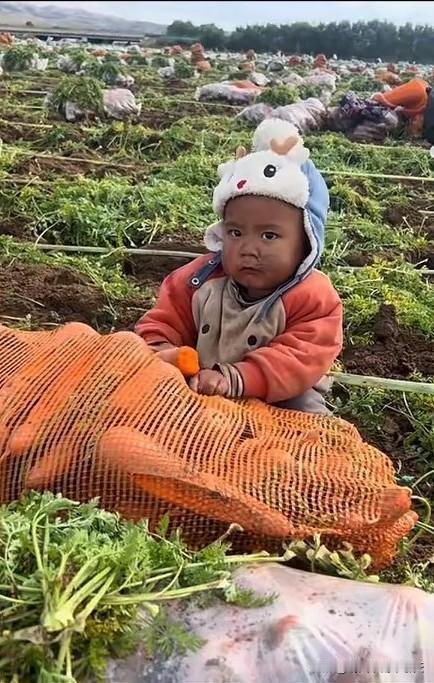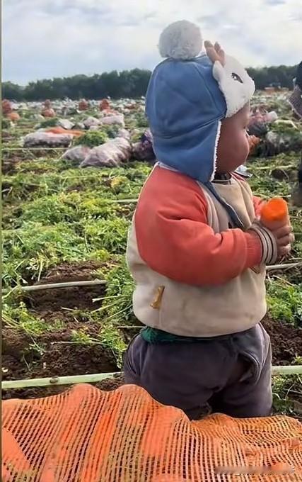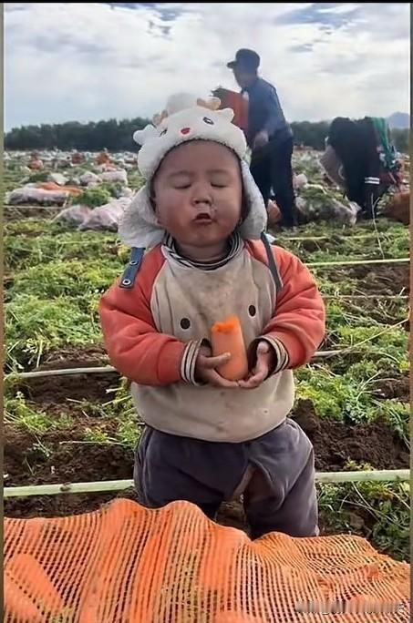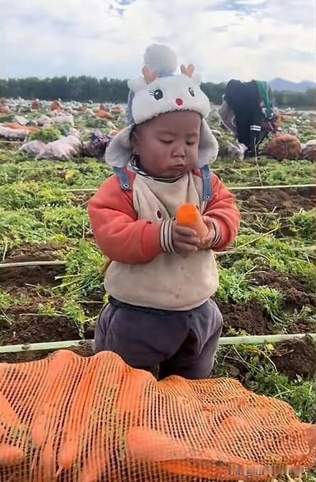 这种老品种小孩现在真的少见了? 头戴鹿头帽,身穿开档裤,还淌着鼻涕,逮住带泥的生萝卜就一阵狂啃,味道不错,满脸陶醉。 散养的人类幼崽好带,不挑食,身体素质好,抵抗力强,因此也极少生病,风一吹就长大了。 当然,吃生东西多了,家长得经常喂小孩吃宝塔糖,那长条长条的寄生虫要打下来才行。