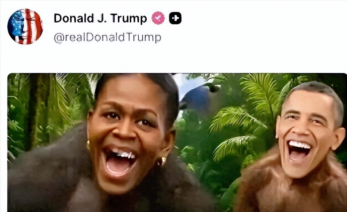 这操作也是没谁了!特朗普的社交账号发了一段视频,直接把前总统奥巴马和他老婆米歇尔的脸P到了两只猴子脸上,这事一出来,不管是共和党还是民主党,都急着骂他,白宫慌得不行。 不过一开始白宫还嘴硬,死不承认有问题,说这段视频是从网上剪下来的,是保守派人士做的,只是是把特朗普拍成“丛林之王”,民主党人对应《狮子王》动漫里里的角色而已,还说大家太敏感,多关注关注老百姓真正关心的事。 这话一出更没人买账了,要知道在美国,把黑人跟猴子绑在一起可不是小事,这是从奴隶制时候就有的种族歧视套路,就是故意往人家心上捅刀子,更何况还是前总统夫妇。 眼看骂声越来越大,白宫只好改口说那段视频是工作人员“误发”的,已经删了,这纯属糊弄人,一看就是没辙了找的借口。 有意思的是不光民主党骂他,连他自己所在的共和党,都有不少大佬站出来反对, 民主党就更不用说了,骂得更狠,比如众议院有大佬让所有共和党人都站出来,谴责这种恶心人的偏见,而加州州长纽森直接说发这种视频就是无耻的行为。 还有美国有色人种协进会的主席也愤怒了,说这就是公然的种族歧视,让人作呕,还警告说以后投票的时候绝对不会忘了这份伤害。 其实说句实在的,特朗普也不是第一次搞这种事了,这也让让人看清种族歧视这根刺,在美国扎得有多深,所以觉得美国就是天堂的人此时作何敢想呢?