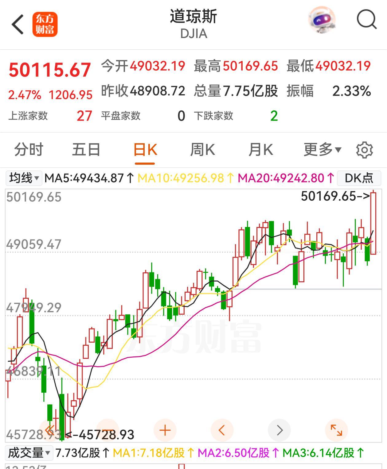 周五风向突变,美股全线上涨,道琼斯指数涨幅2.47%,史上首次站上5万点大关。纳斯达克中国金龙指数大涨3.75%,富时中国A50期货指数上涨1.03%,A股下周是稳了。 近期美股科技股调整,大宗商品巨幅波动,对A股市场情绪产生负面影响,加之A股主动降温,市场热点退潮,股指持续回撤,成交量快速萎缩,节前情结+行情清谈,人们视乎打算提前封盘过年了。 周五美股表现亮眼,科技股一改颓势,芯片股大幅上涨,人气龙头英伟达涨幅超过8%,大型科技股多数上涨;光通讯、贵金属、加密货币领涨大盘,在市场结构调整中,道指创出了历史高点。 美股强势上涨,A股也没理由持续调整,上证4000点是重要支撑点位,也是慢牛标志性点位,好不容易站上4000点,再度失守算什么牛市,美股创了历史新高,A股还在半山腰,下周A股上行是大概率事件,市场年前会给大家发个红包。