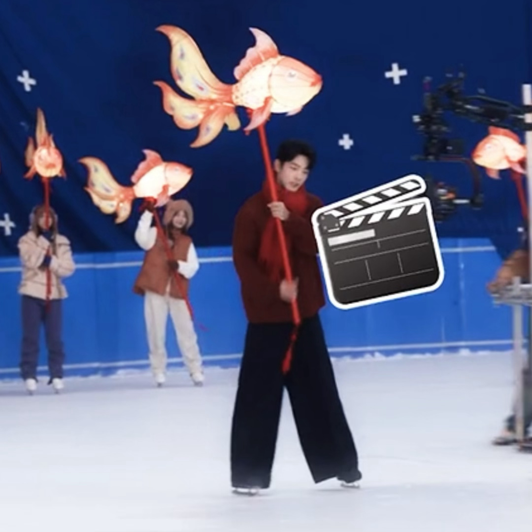 肖战冰雪大片花絮,这个红红的小战好乖好萌!!
