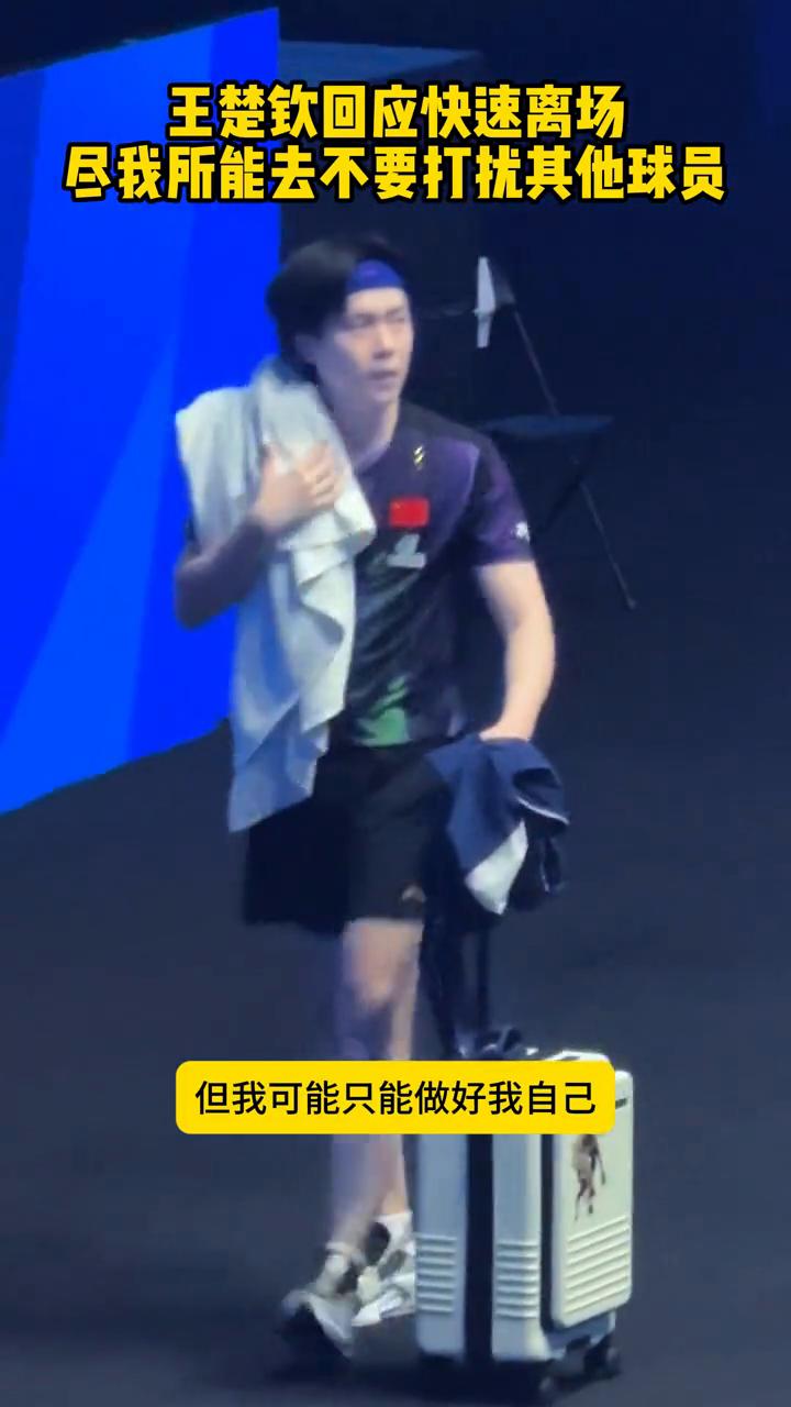 王楚钦回应快速离场:尽我所能去,不要打扰其他球员。 想快速离场的人也是不希望去,因为大家对于我的喜爱而去影响到其他的运动员。我觉得我没有办法可能去倡导,但是我觉得这都是观众的自由,但我可能只能做好我自己,我认为自己尽尽力了,尽我所能去不去打扰到其他的运动员。