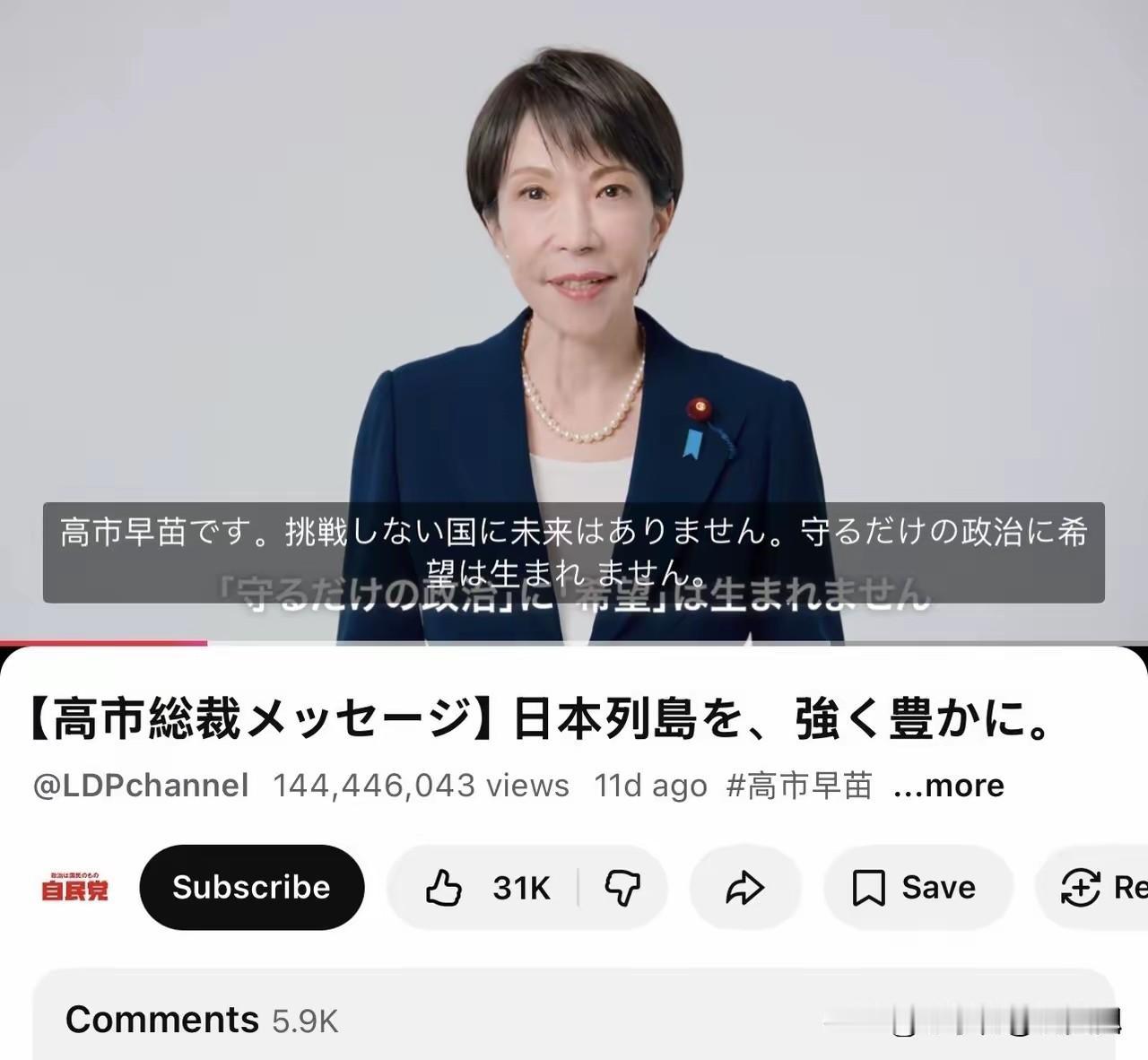 对于高市早苗提前大选,国内的舆论预测与国外舆论差距大。实际情况是美国和西方是支持高市早苗继续当选以制衡中国。是我们的一些舆论幻想高市早苗败选给中日关系解冻,这种思想是很危险的。事实就是高氏的竞选言论获得日本国民高度赞同。 翻译下,高市的言论实际意思就是,“不开疆扩土没希望。不发展军事保持自卫模式是没有前途的,日本的未来要靠自己(战争)去开拓,她的政党会和大家在一起冲在最前面,在开疆扩土的过程中全国人民必须团结一心,碰到困难也要互帮互助,最后为我们抵抗俄罗斯中国,并且发展军事能力使自己变得强大,与大家一起携手并进。” 在日本的国民意识里,对外发动战争不是错误而是正确的,是日本的生存之道,所以我们要有高度的认识:与日本早晚必有一战。需要时时刻刻准备。
