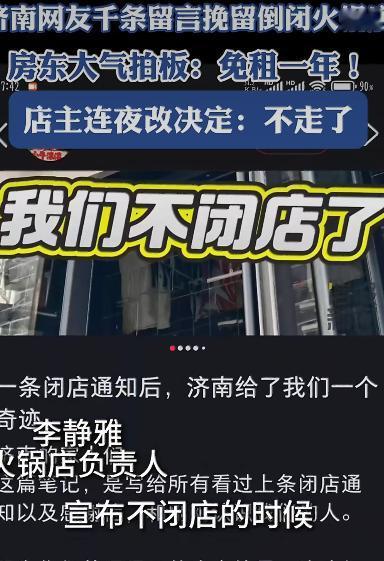 有家火锅店最近成了大家热议的焦点。原本,这家店因为经营上的压力,老板无奈之下打算关门大吉,还在网上发布了闭店通知,想着和老顾客们好好道个别。 可没想到,这闭店通知一发出去,就像在平静的湖面上扔下了一颗大石头,激起了层层涟漪。评论区里,瞬间涌进了上千条留言,全是老顾客们的不舍与挽留。大家你一言我一语,有的说“别关啊,我们常来,这味道我们舍不得”,有的回忆起在这家店里的点点滴滴,那些和朋友聚餐的欢乐时光,那些和家人围坐一桌的温馨场景,都仿佛还在眼前。这些留言,就像一股股暖流,温暖着店老板的心。 店老板看着这些留言,心里五味杂陈。他没想到,自己这家普普通通的火锅店,竟然在大家心里有着这么重要的位置。正当他沉浸在这些感动之中时,又一个惊喜降临了。店铺的房东,在得知了这件事后,也被网友们的热情和店老板的坚持所打动。房东二话不说,直接拍板决定,免去这家火锅店一年的房租! 这可不是一笔小数目啊,对于正在困境中的火锅店来说,简直就是雪中送炭。房东说,他看到大家这么努力地挽留这家店,看到店老板一直用心经营,不忍心看着这么一家有温度的店就这么没了。他愿意少收点租金,给店老板多一点时间,一起扛过这个难关。 店老板得知房东的决定后,激动得不知说什么好。他原本已经做好了关门的准备,可网友们的挽留和房东的支持,让他重新燃起了希望。他觉得,自己不能就这么放弃,不能辜负了大家的这份情谊。于是,他连夜改了决定,不走了,要留下来继续营业! 店老板说,济南人的善良和这座城市的温暖,给了他留下的底气和信心。他要把这份“宽厚”之情化作动力,用心经营这家店,不辜负大家的厚爱。现在,这家火锅店又重新热闹了起来,老顾客们纷纷前来捧场,新顾客们也被这里的故事所吸引,店里的生意越来越好。 这件事,就像一束光,照亮了大家的心。它让我们看到,在这个快节奏的社会里,人与人之间的温情和善意,从来都没有消失。一家小小的火锅店,因为大家的努力和托举,又重新焕发出了生机,这不就是人间最美的风景吗? 来源:海报新闻