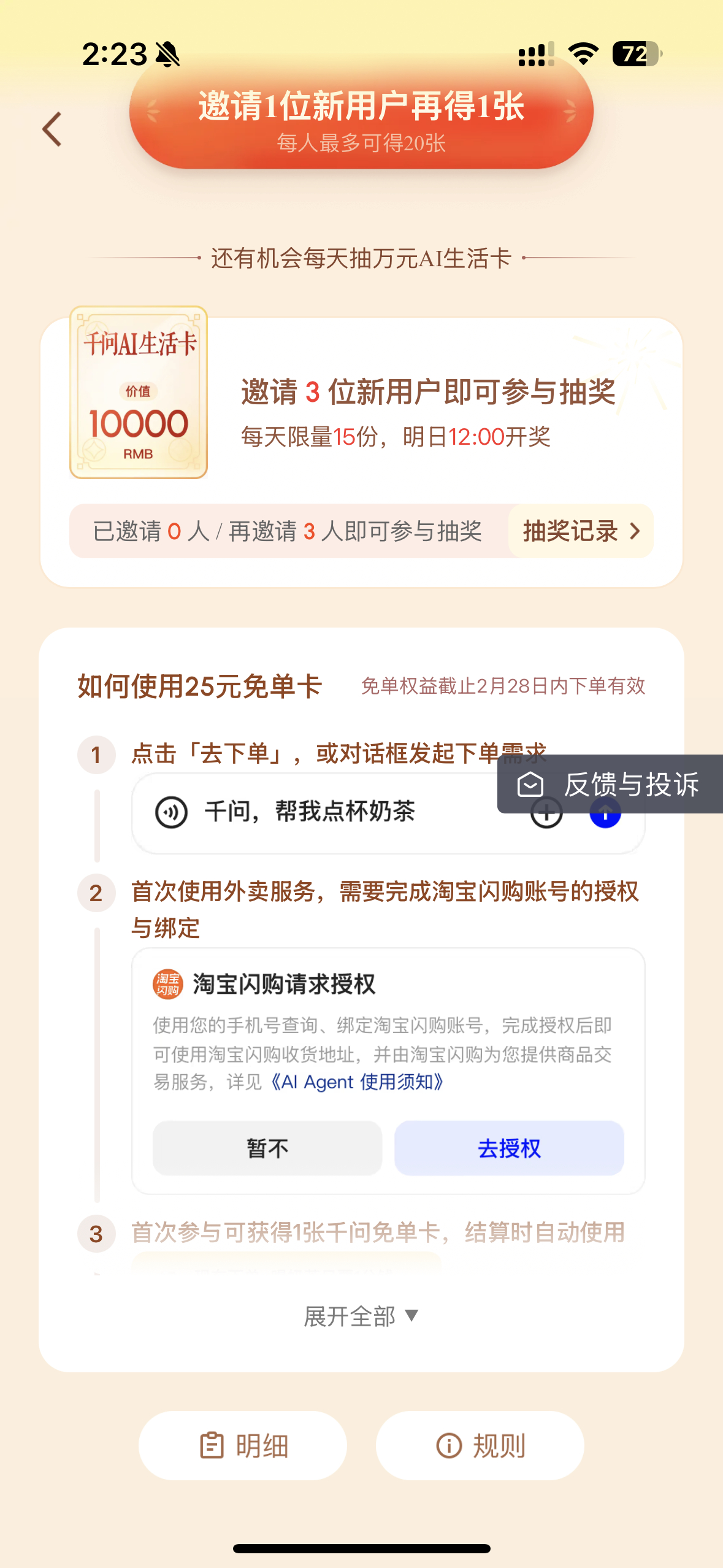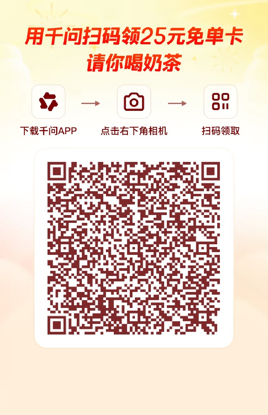 传送门:【千问】复制口令,打开千问App,25元免单卡等你领!~fdbe3EHjbC~