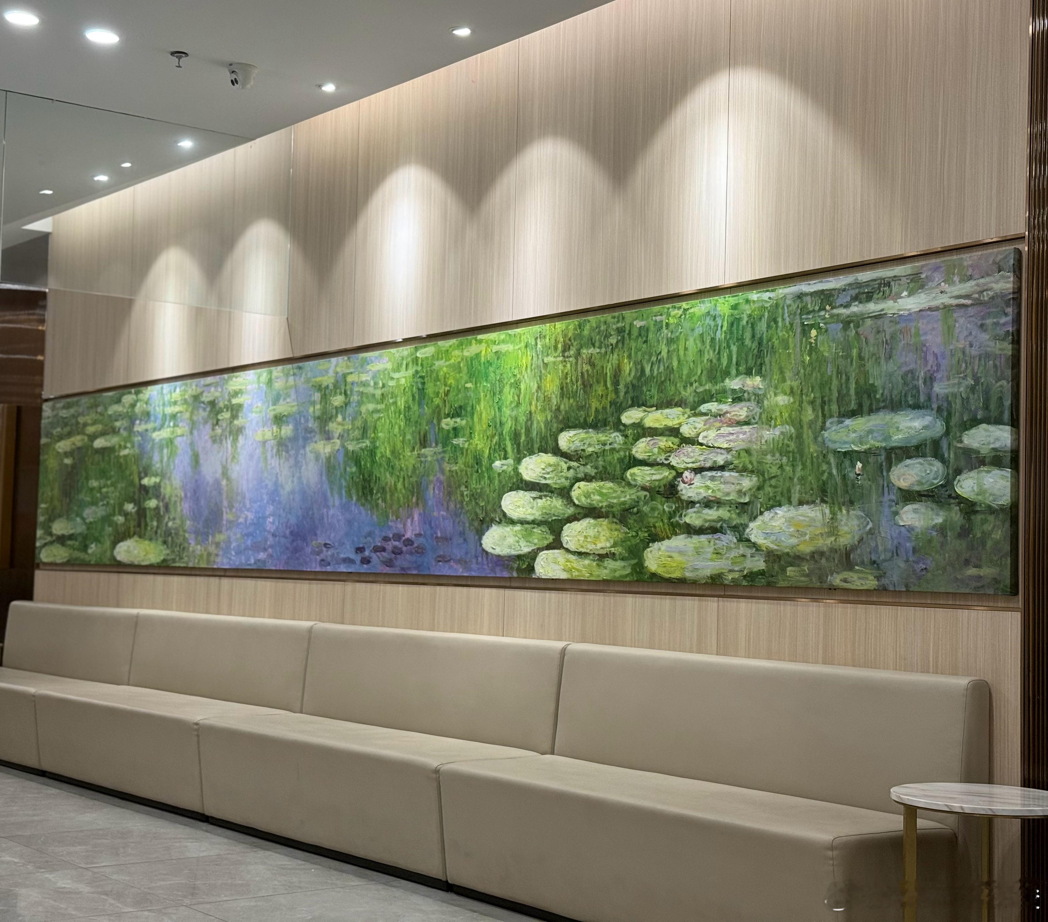 今天陪老妈去医院看眼睛,这幅油画让我想起了小学语文课本里朱自清写的《荷塘月色》发现生活中的小美好 上海·上海新视界东区眼科医院