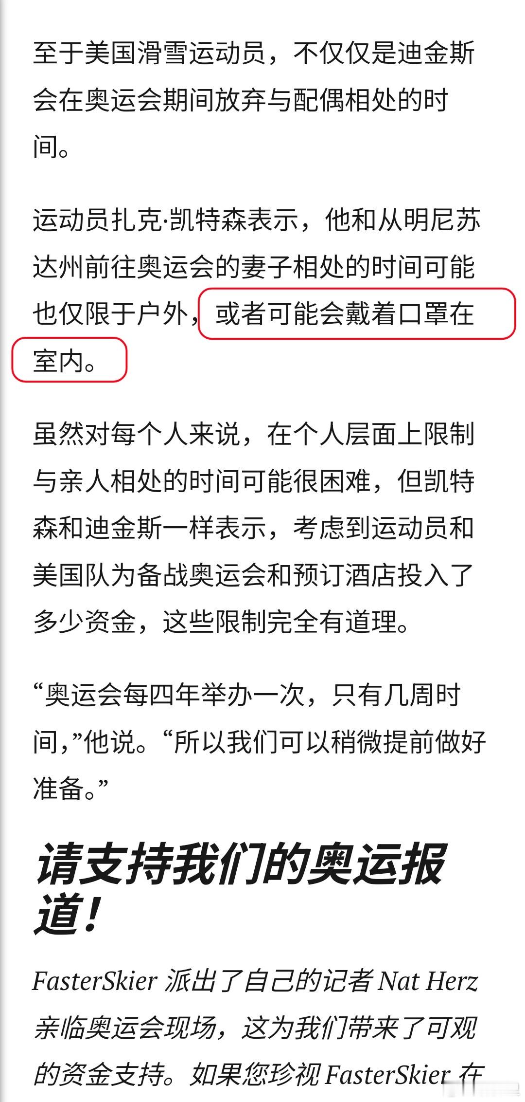 滑雪运动员们集体同意形成一个奥运防疫泡泡。