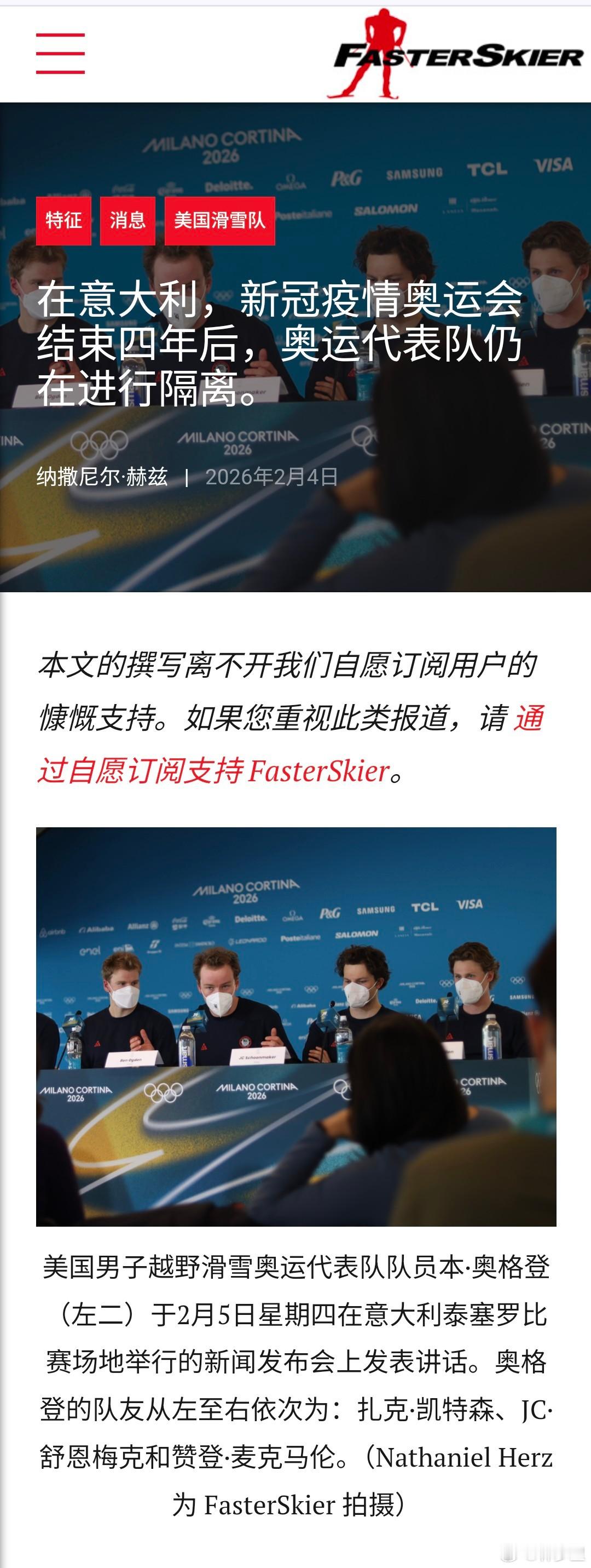 米兰冬奥会开幕2026年冬奥会上,滑雪运动员们仍在戴口罩,仍在进行隔离。