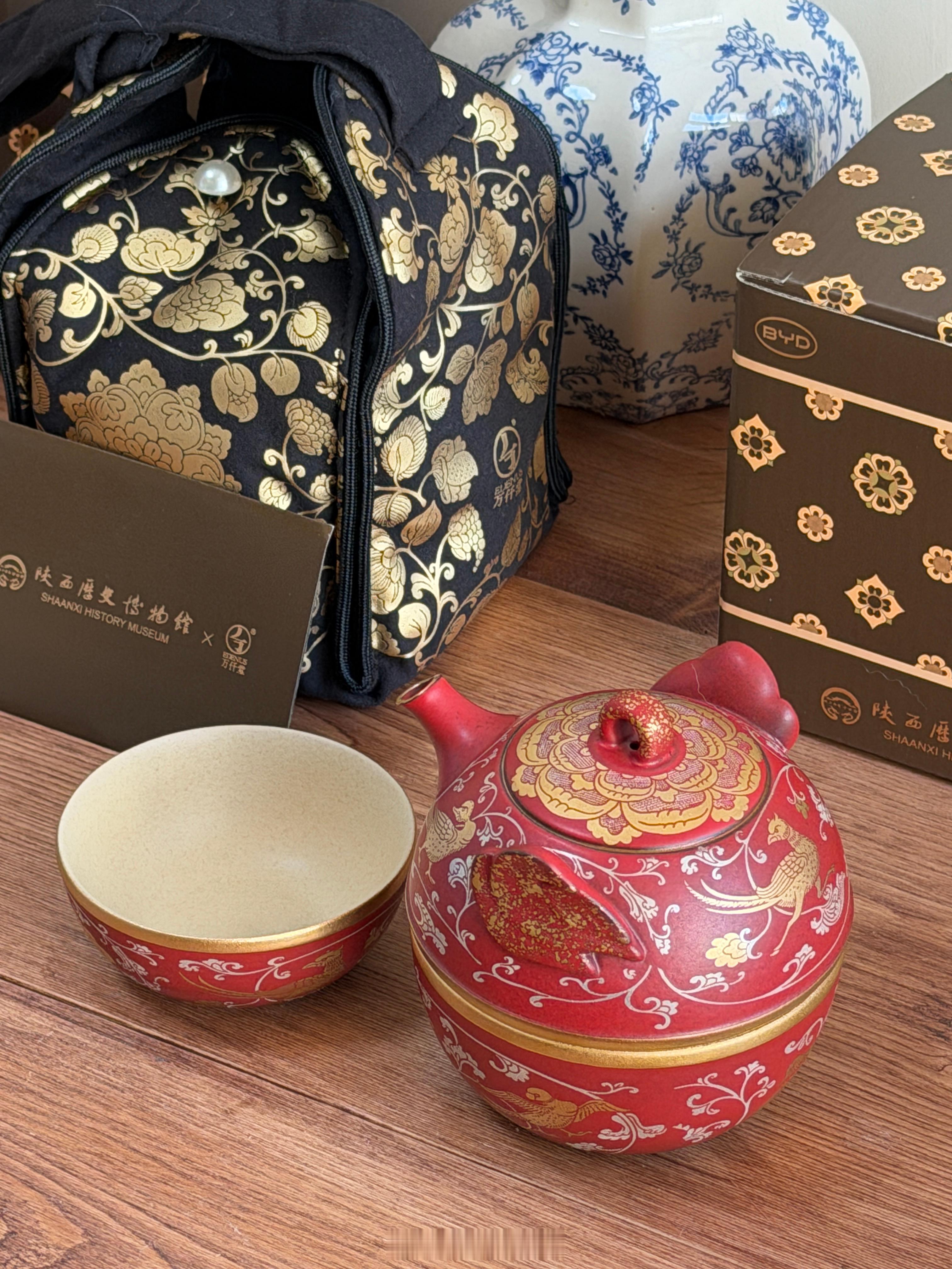 哇趣!比亚迪送的这套陕西历史博物馆的『大唐茶器』太太太太精致了!我对茶没研究平时也就泡泡茶包喝喝所以如果我用这套『大唐茶器』来泡茶包的话是不是有点儿亵渎它了