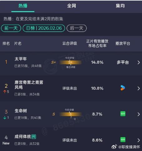 成何体统首播云合8.6%王楚然丞磊成何体统云合 《成何体统》首日云合市占率拿下 8.6%,在当日热播剧榜单中位列第四