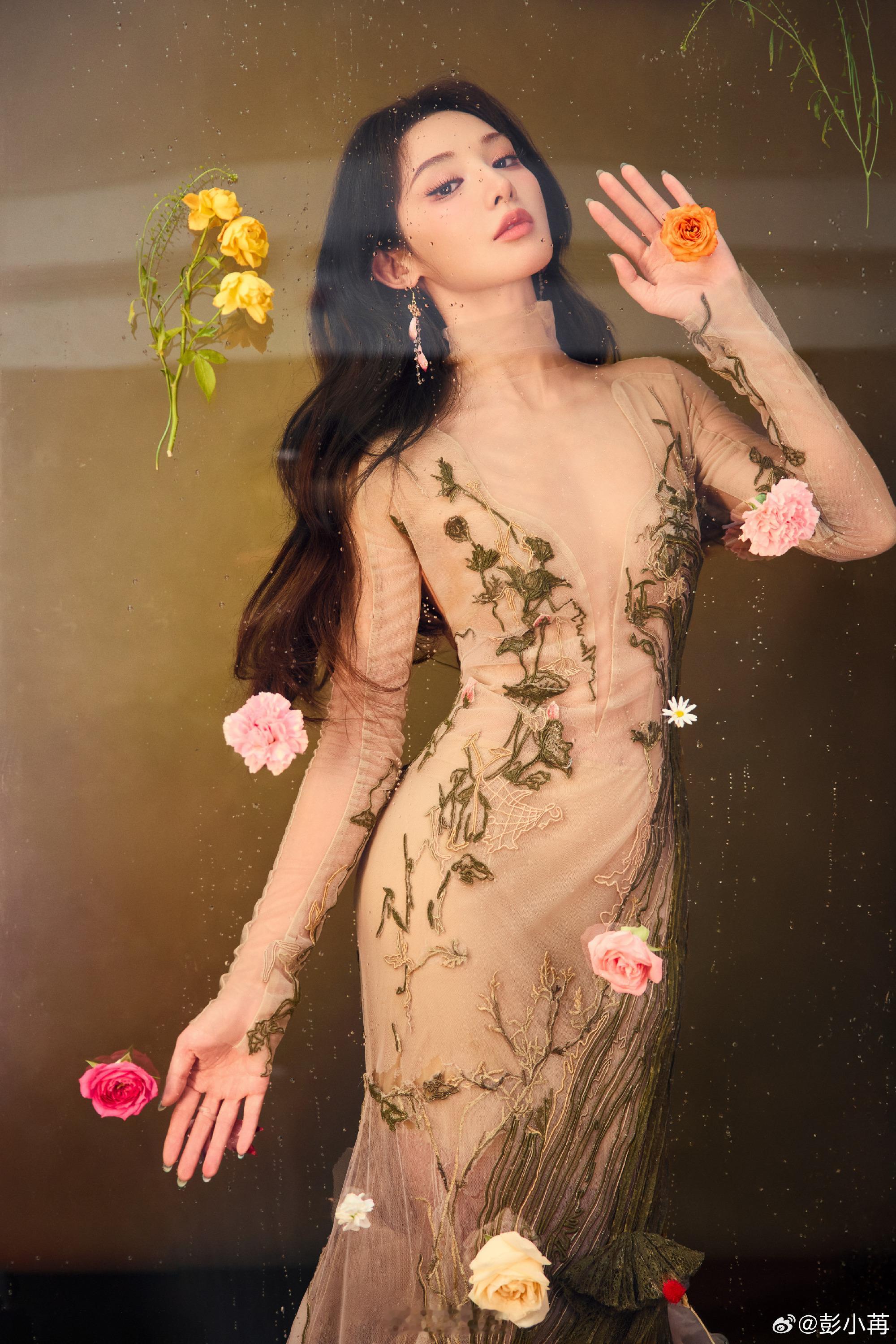 彭小苒真的是时尚妖精!彭小苒深V开到肚脐深V开到肚脐的肤色连体裙,在她身上露而