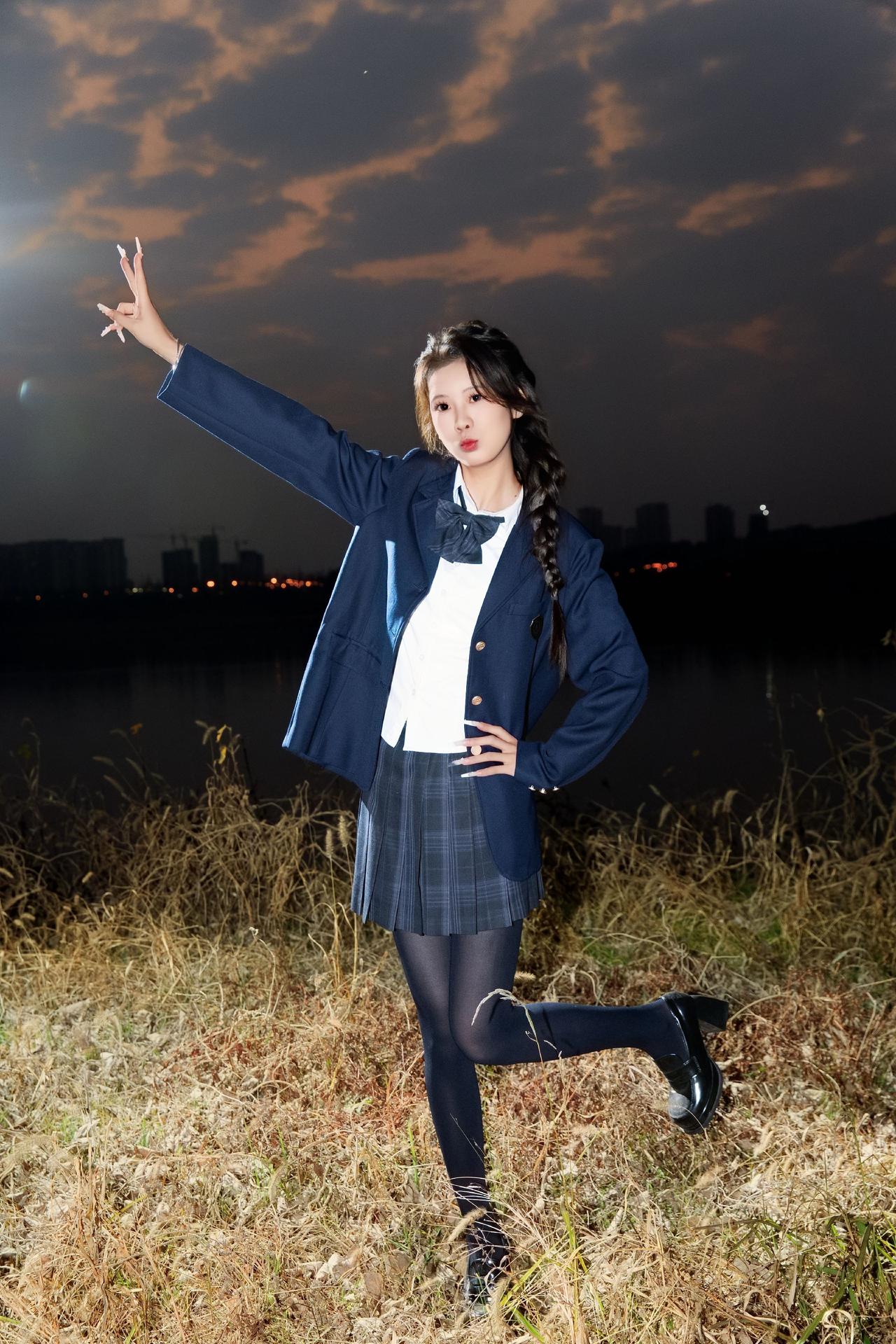 长沙约拍📷-蓝调时刻&JK 模特:@派大欣 设备:Canon EOS R62 长沙约拍 蓝调时刻 jk jk制服