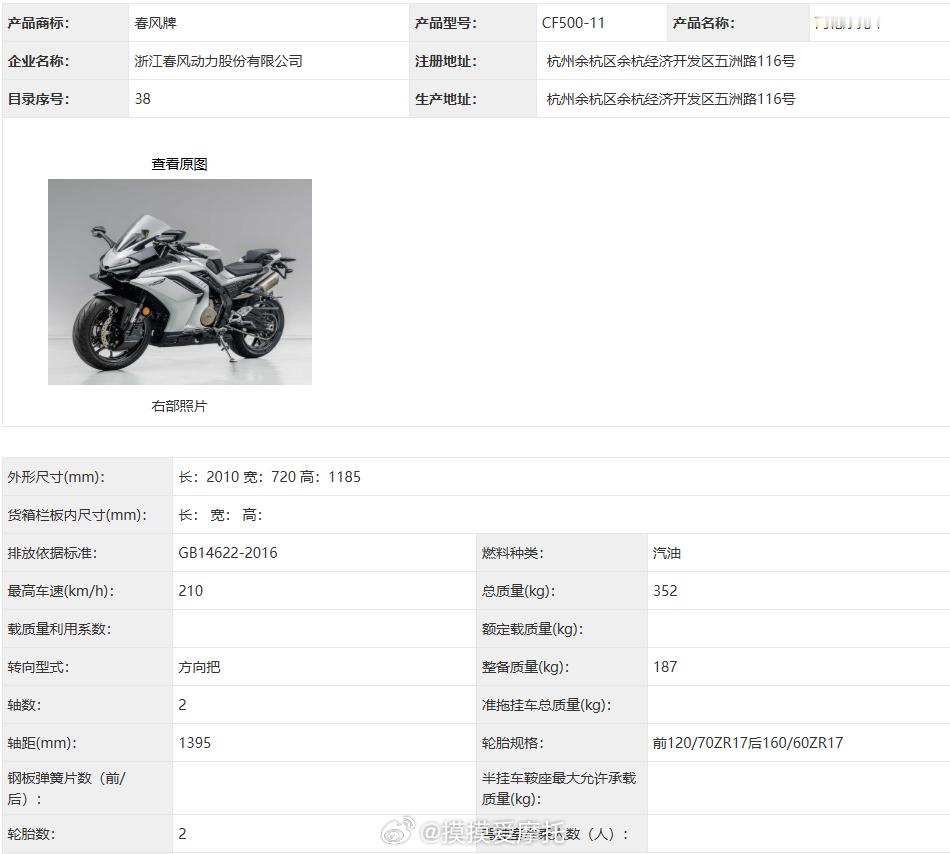 机车摩托车春风四缸500仿赛车型,年后应该就会正式发布了!摸摸爱分享