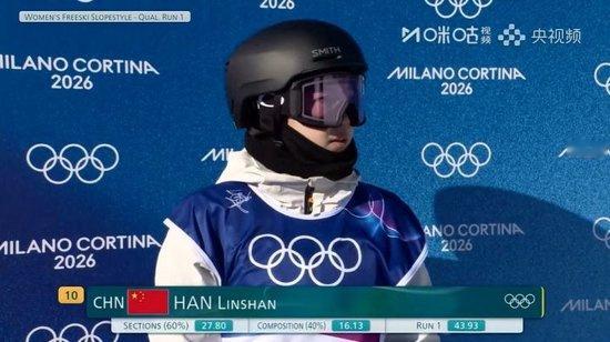 【韩林杉首轮获43.93分】直播吧02月07日讯 米兰冬奥会自由式滑雪女子坡面障碍技巧预赛,中国选手韩林杉出场,第一跳获得43.93分。