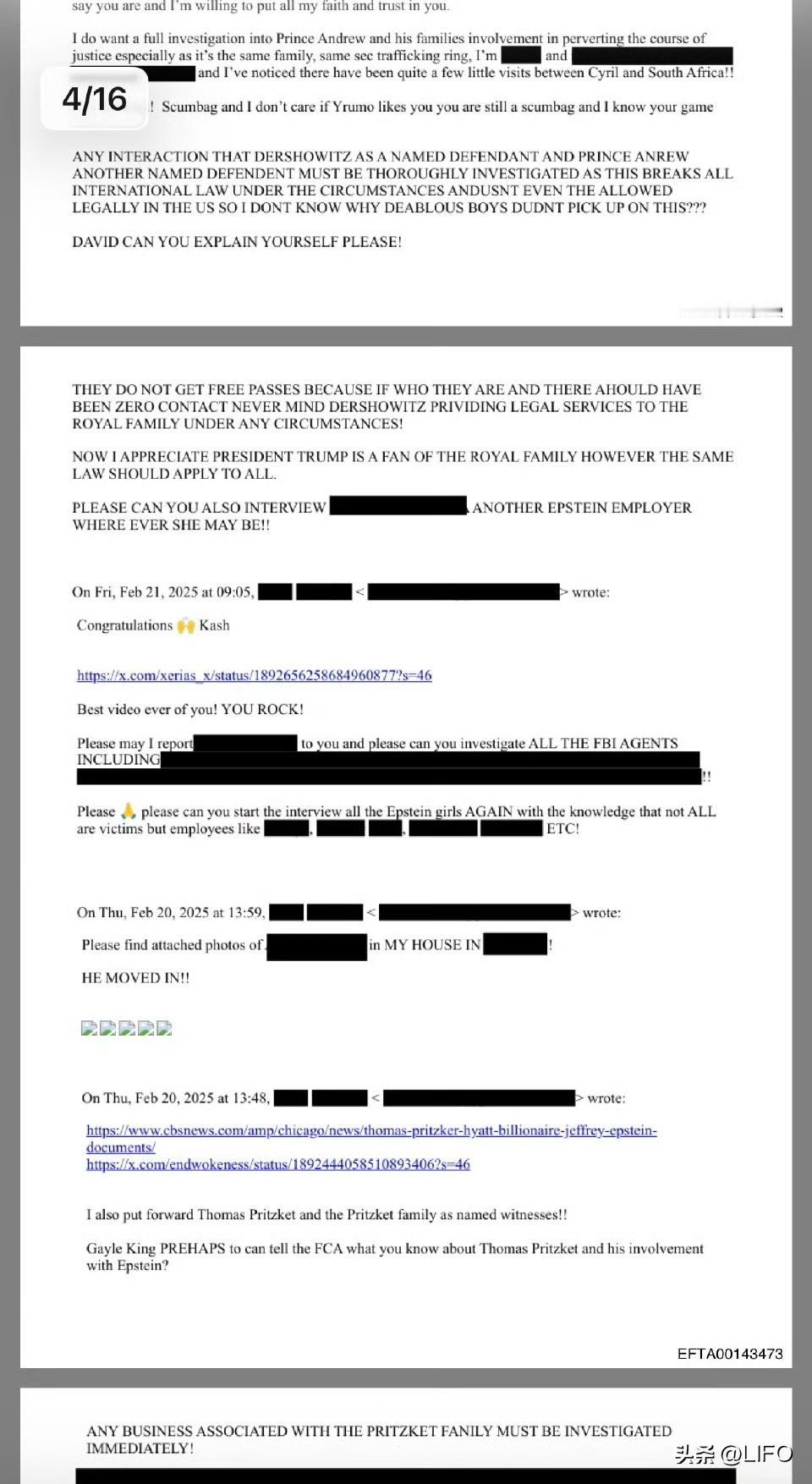 说个狠的,特朗普发的这个描绘奥巴马夫妇为猿猴视频的作者 Xerias_x,也是之前特朗普发过的给美国人头上泼大便的视频作者 Xerias_x。请注意相同的水印。然后,这个Xerias_x,我在爱泼斯坦档案里找到了,爱泼斯坦档案 EFTA00143470.pdf